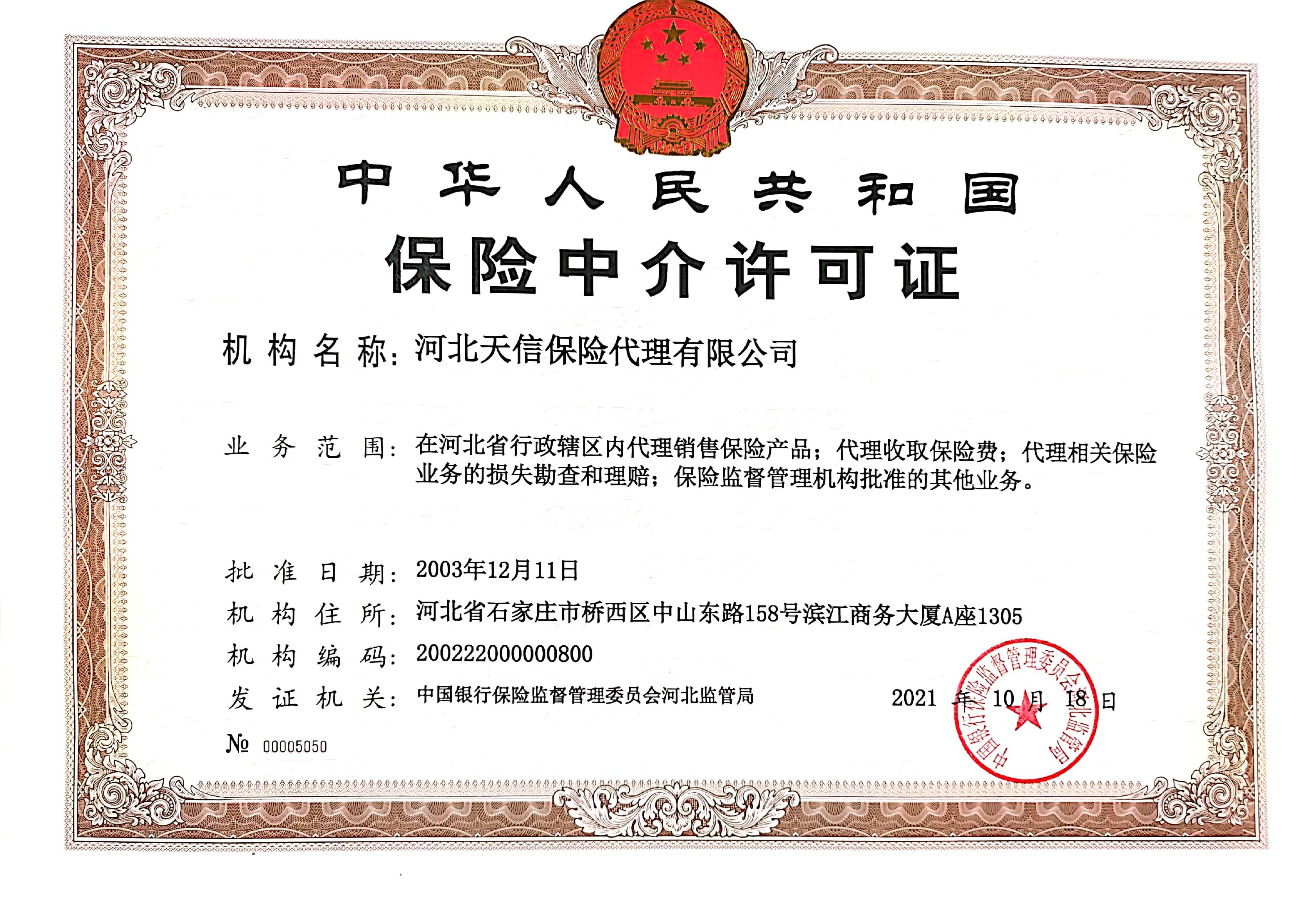 您的位置在:首页 >信息披露>河北天信保险代理有限公司