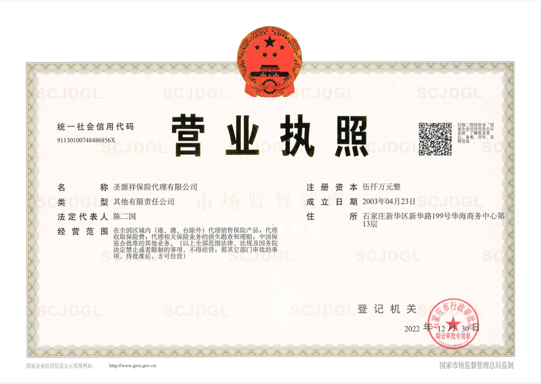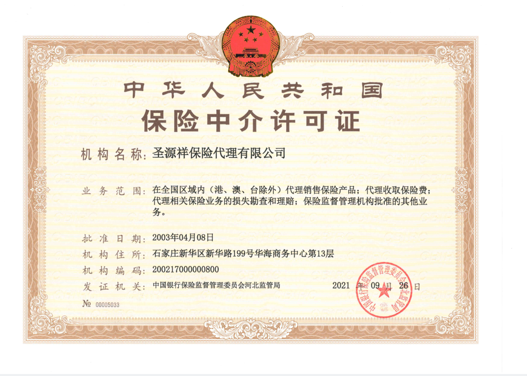 | 公司名称: | 圣源祥保险代理有限公司 | ||||