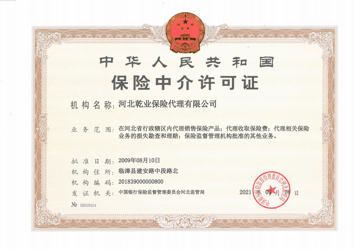 | 公司名称: | 河北乾业保险代理有限公司 | ||||