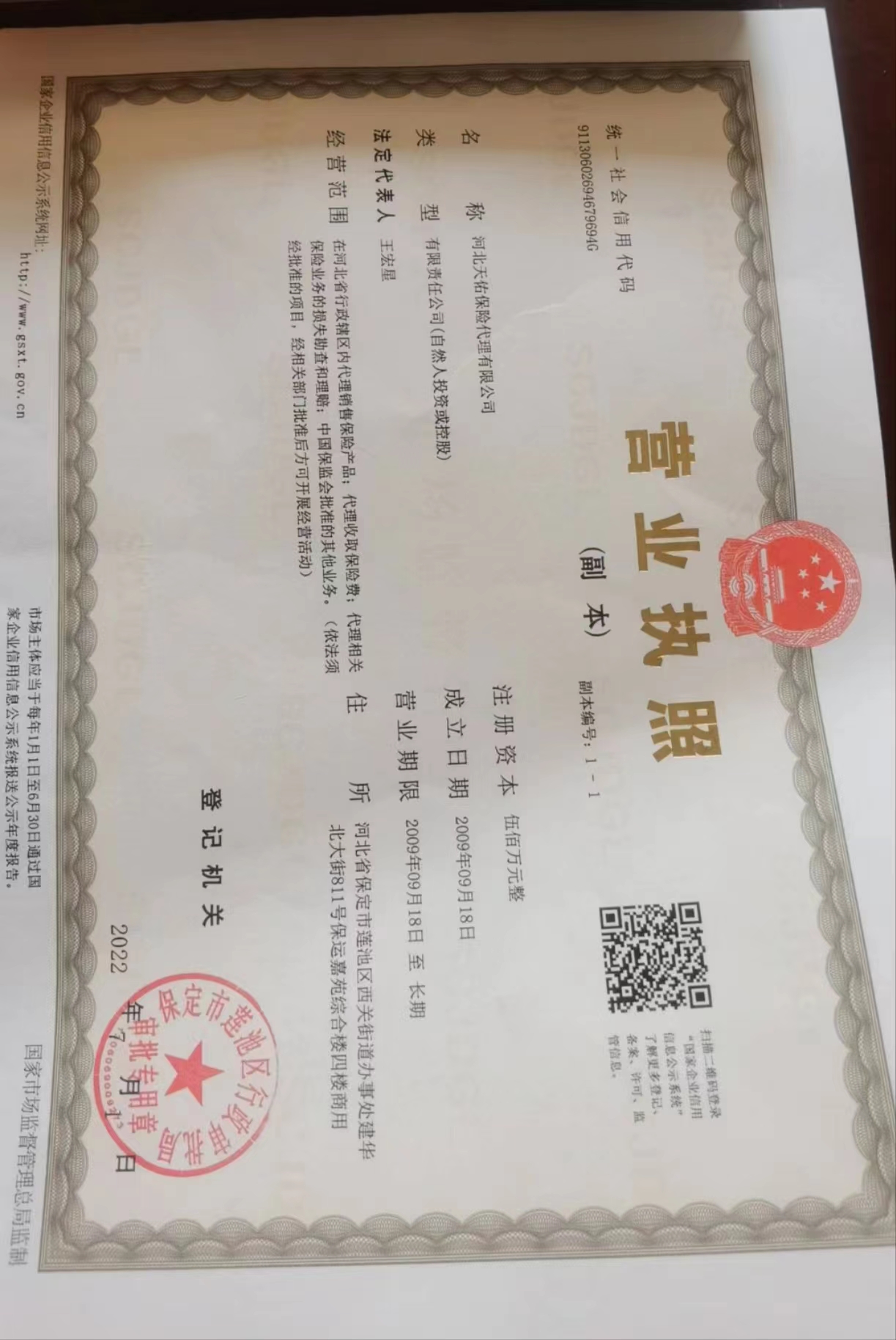 经营范围: 在河北省行政辖区内代理销售保险产品;代理收取保险费;代理相关保险业务的损失勘查和理赔;中国银保监会批准的其他业务。