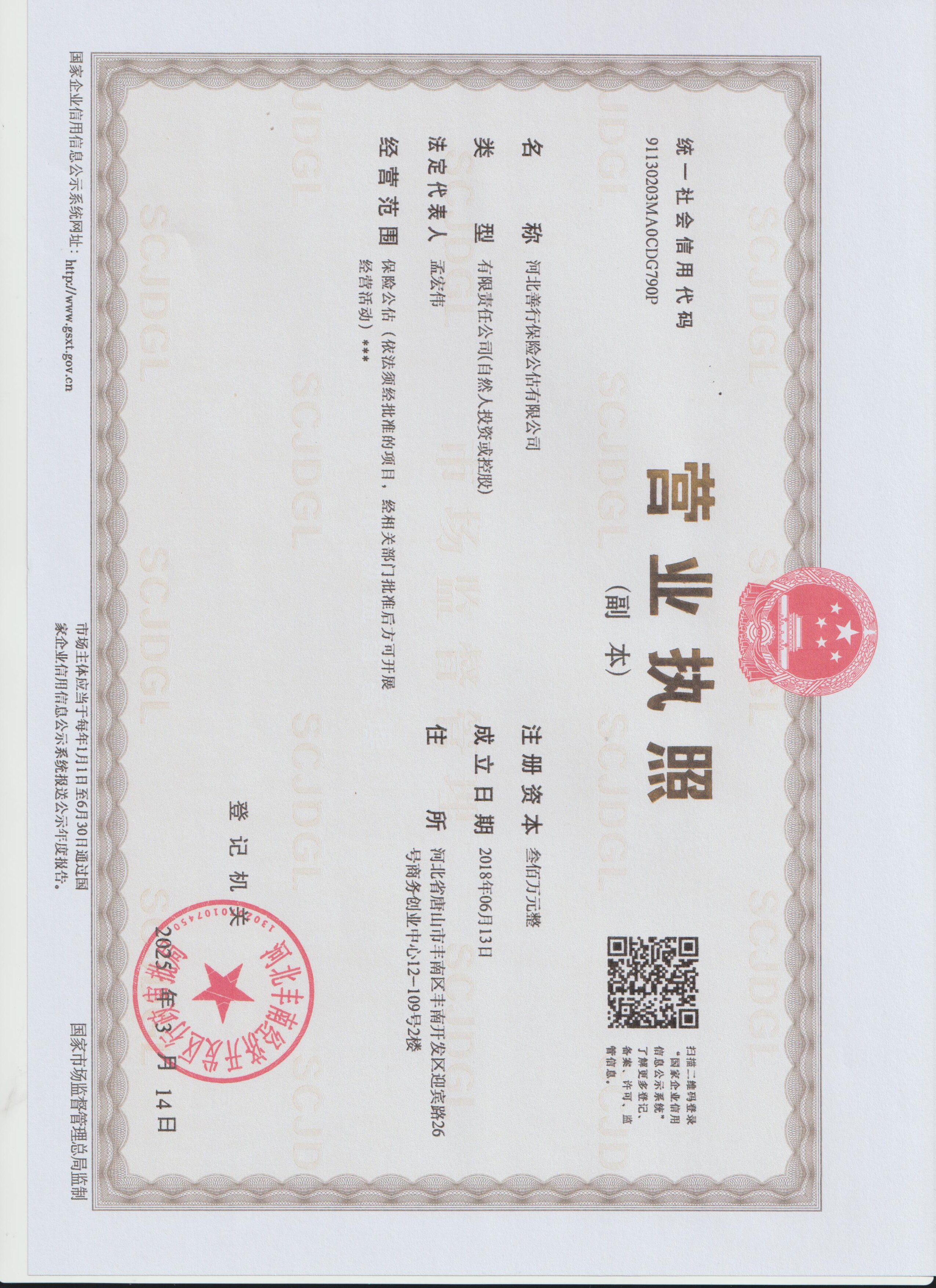成立时间: 2018-6-13 经营区域: 河北省