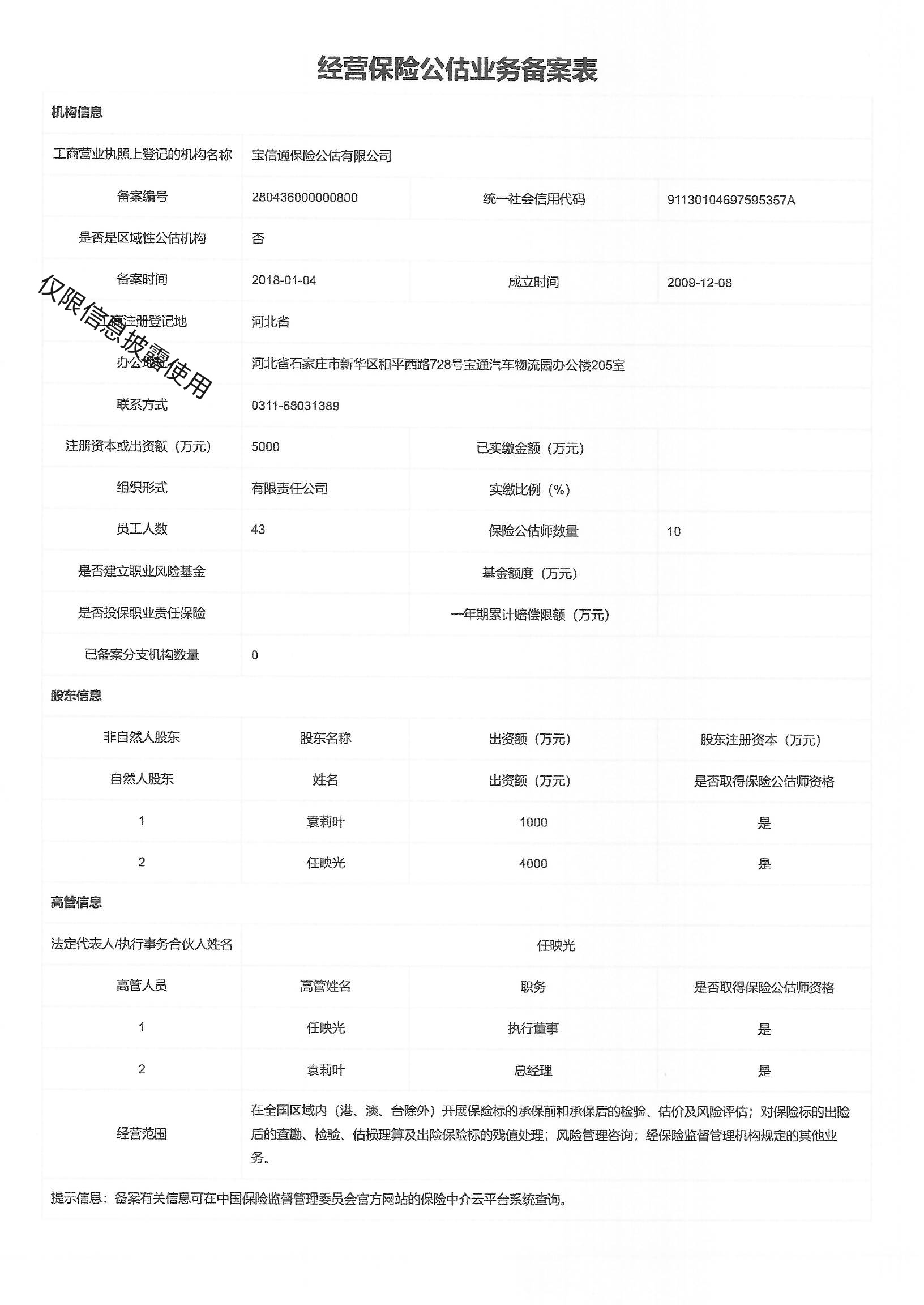 您的位置在:首页 >信息披露>宝信通保险公估有限公司
