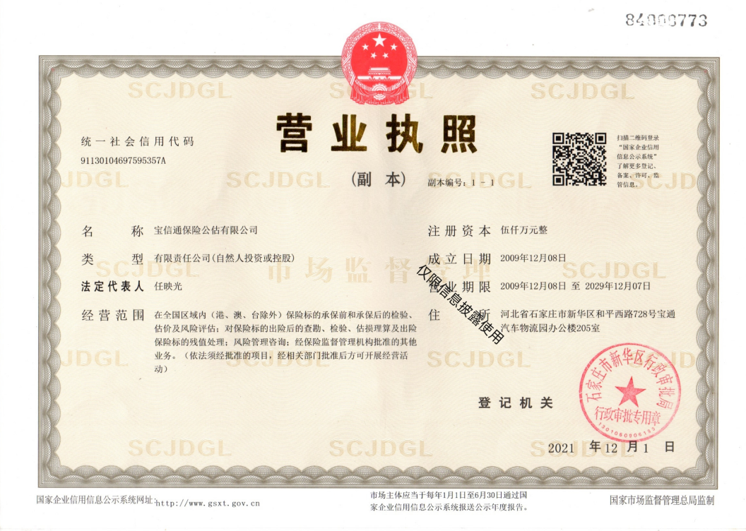 | 公司名称: | 宝信通保险公估有限公司 | ||||