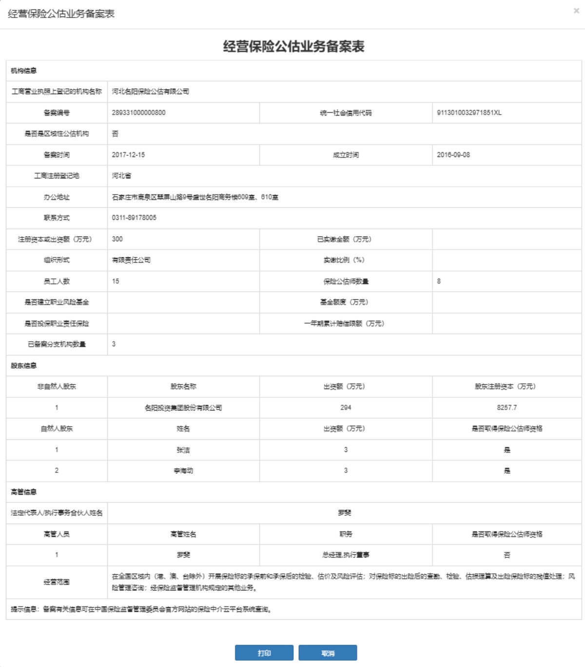 | 公司名称: | 河北名阳保险公估有限公司 | ||||