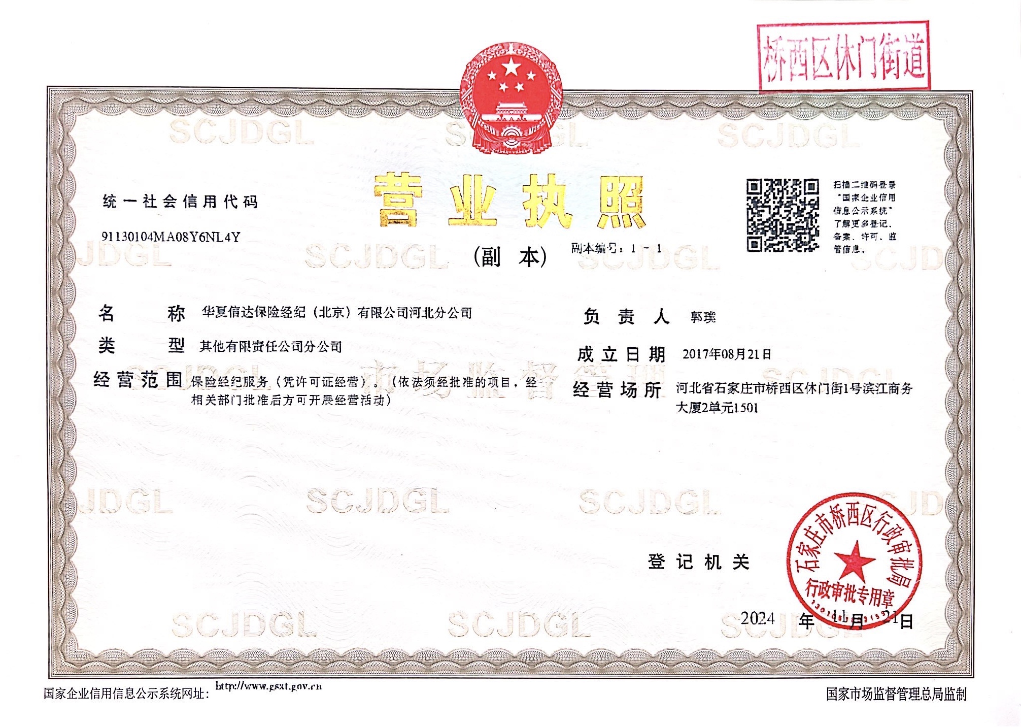 信息披露>华夏信达保险经纪(北京)有限公司河北分公司