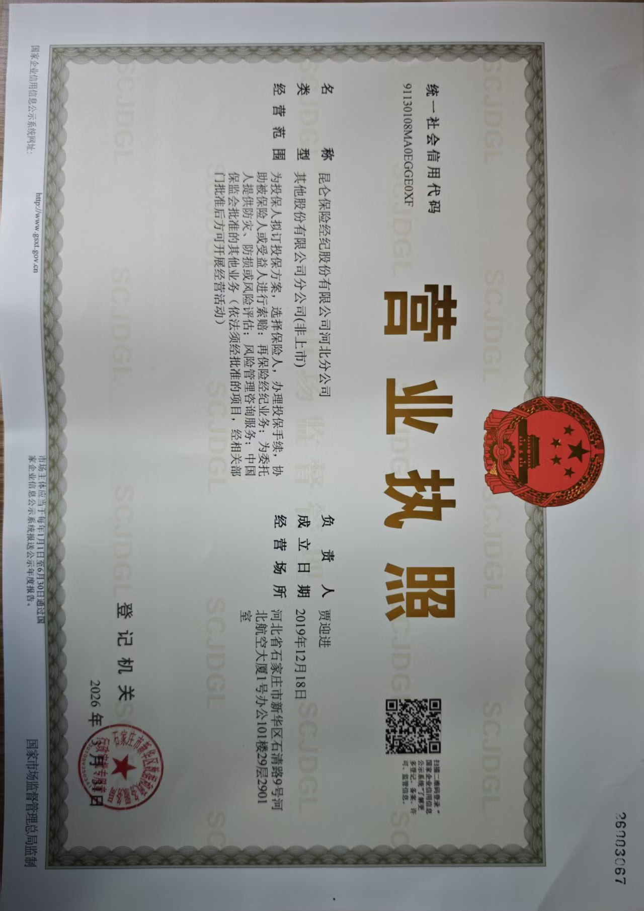 公司名称: 昆仑保险经纪股份有限公司河北分公司