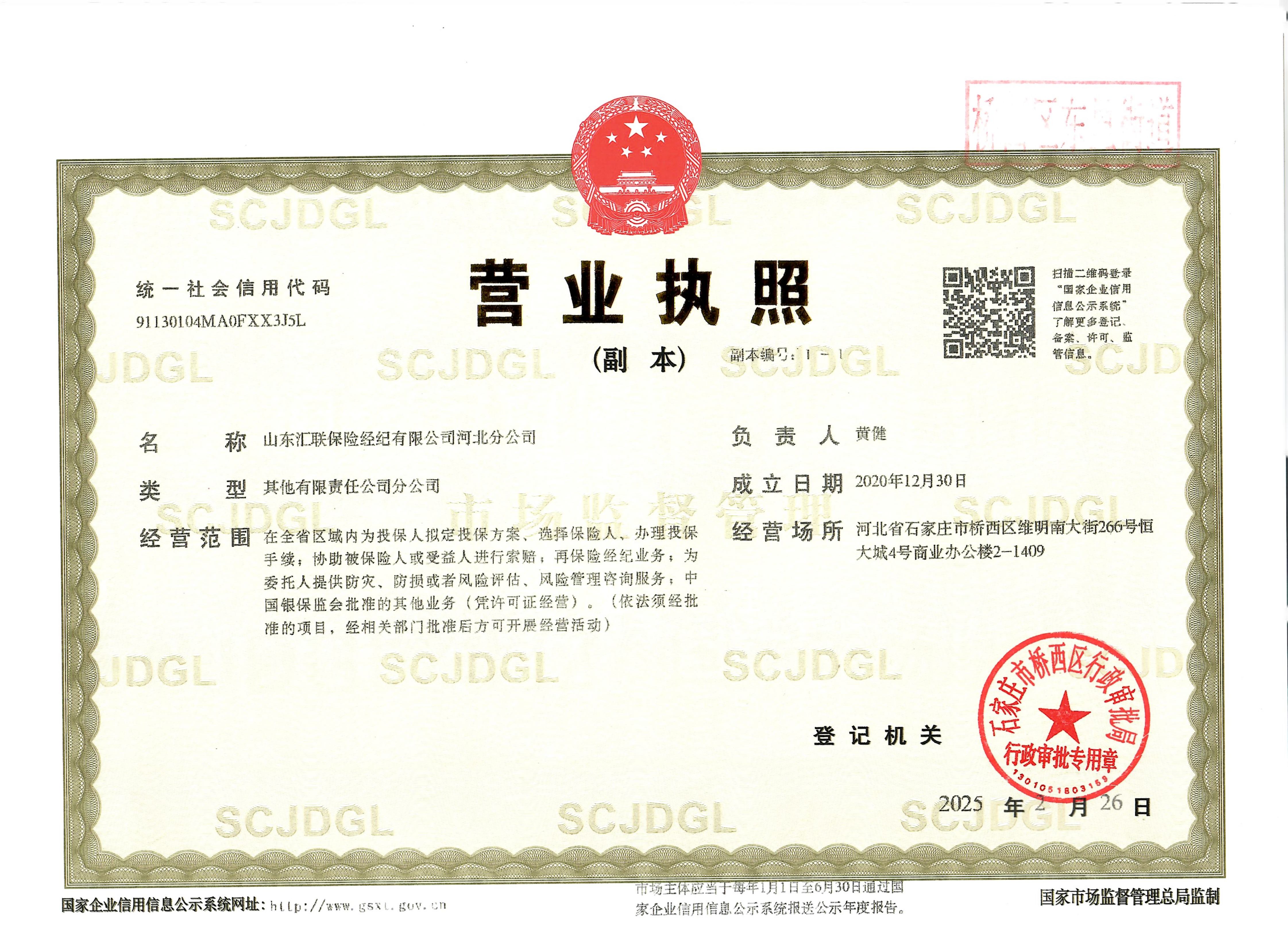 | 公司名称: | 山东汇联保险经纪有限公司河北分公司 | ||||