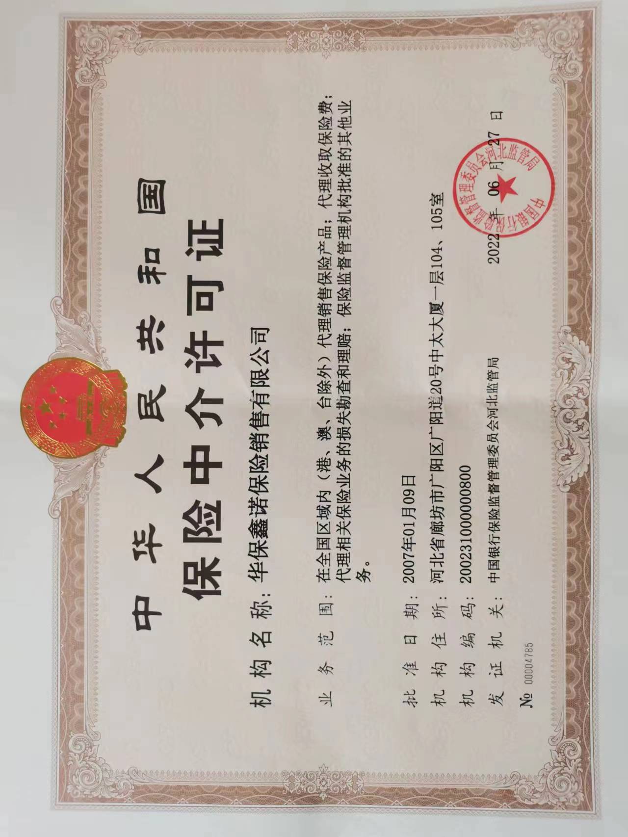 经营范围: 在全国范围内代理销售保险产品;代理收取保险费;代理相关保险业务的损失勘查和理赔;中国保监会批准的其他业务**(依法须经批准的项目,经相关部门批准后方可开展经营活动)