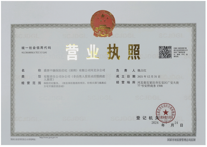 | 公司名称: | 盛唐中融保险经纪(深圳)有限公司河北分公司 | ||||