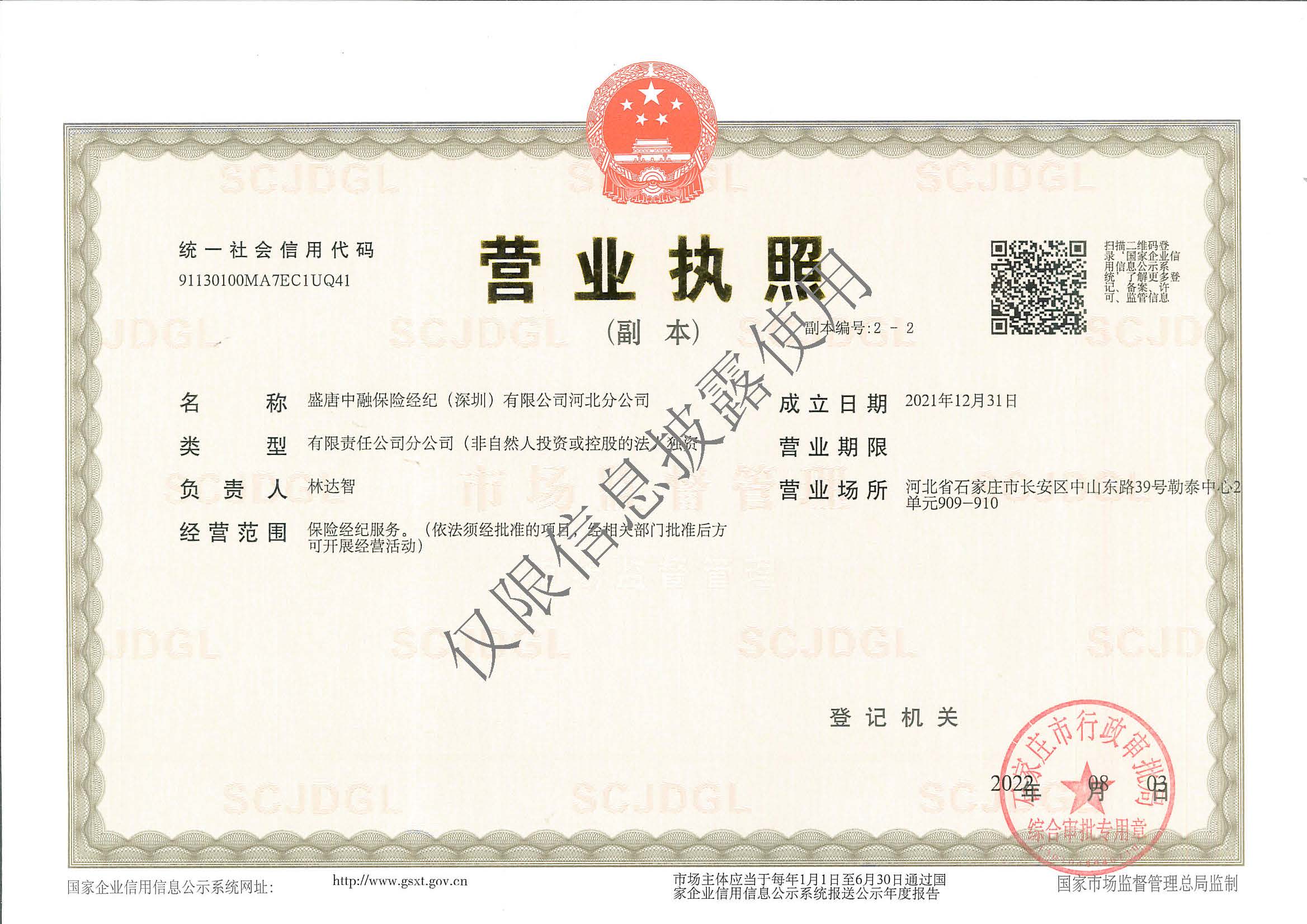 公司名称: 盛唐中融保险经纪(深圳)有限公司河北分公司