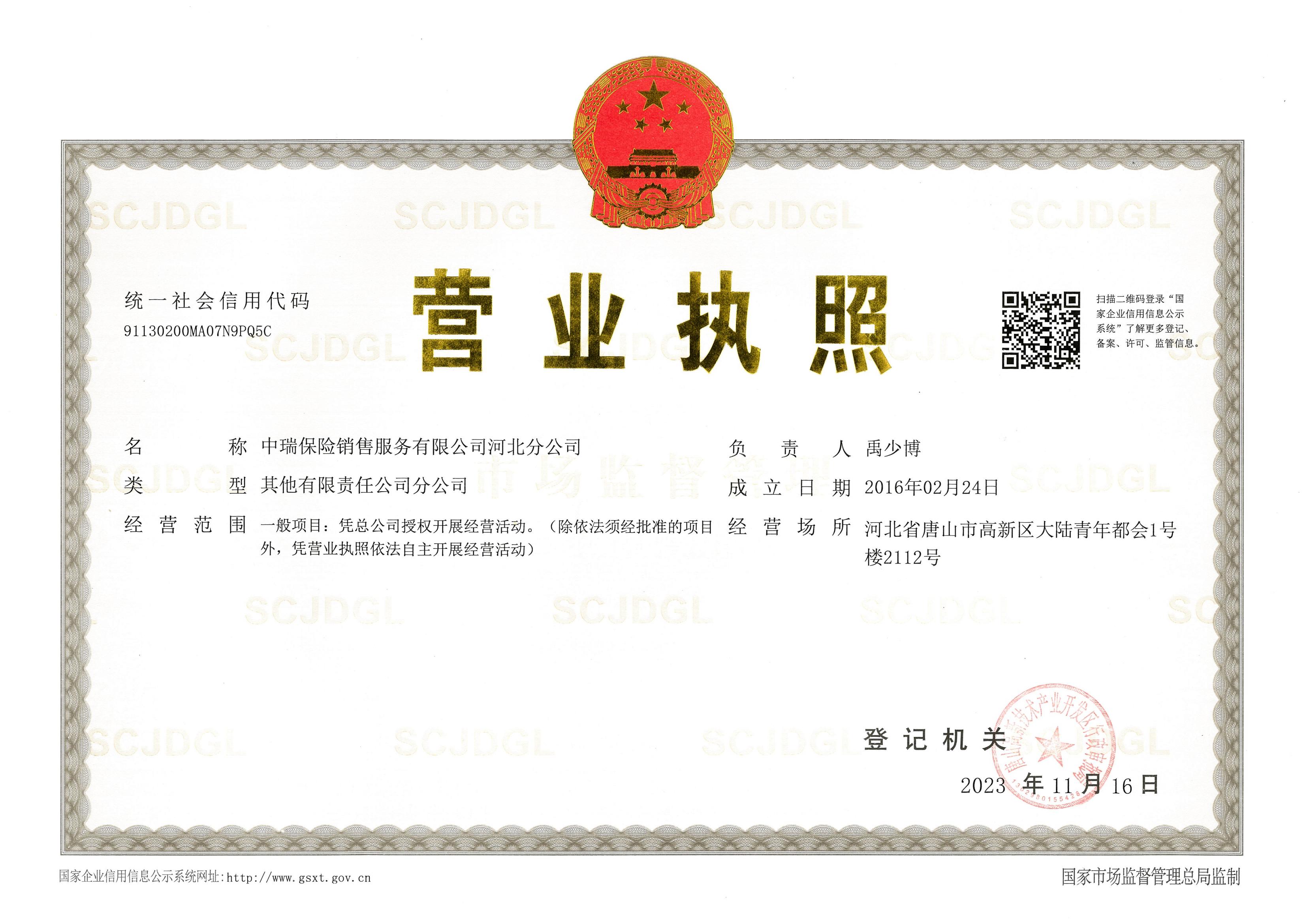 信息披露>中瑞保险销售服务有限公司河北分公司
