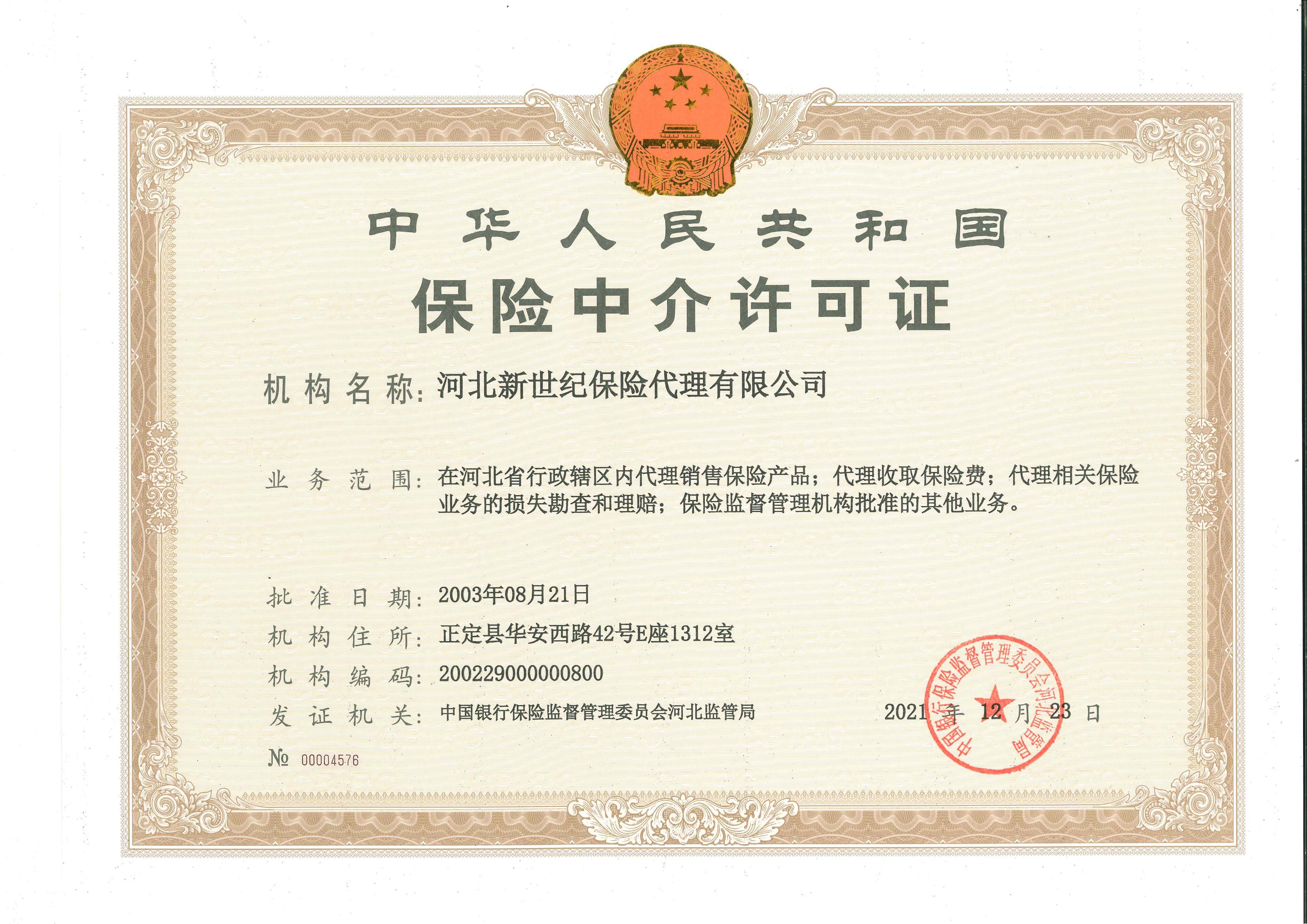 | 公司名称: | 河北新世纪保险代理有限公司 | ||||