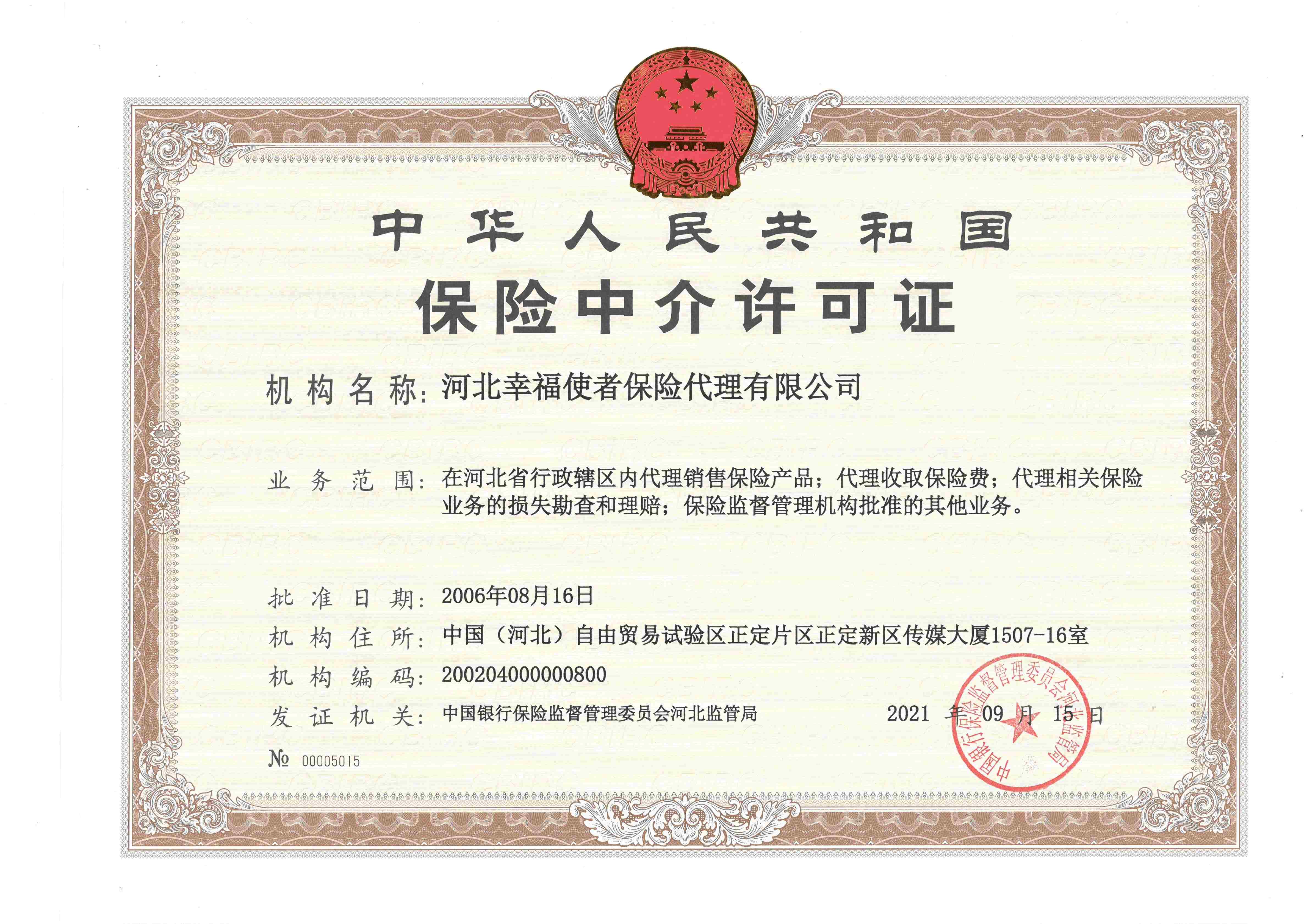| 公司名称: | 河北幸福使者保险代理有限公司 | ||||