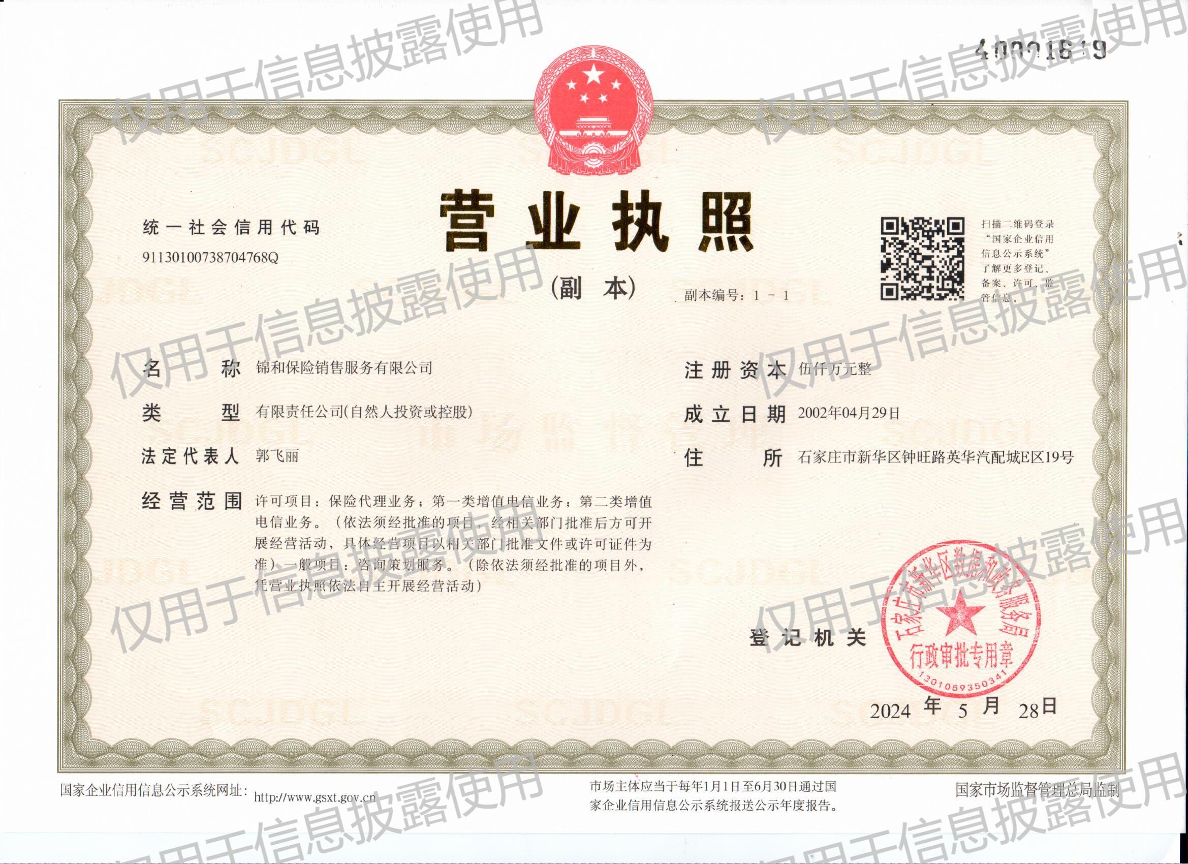 您的位置在:首页 >信息披露>锦和保险销售服务有限公司