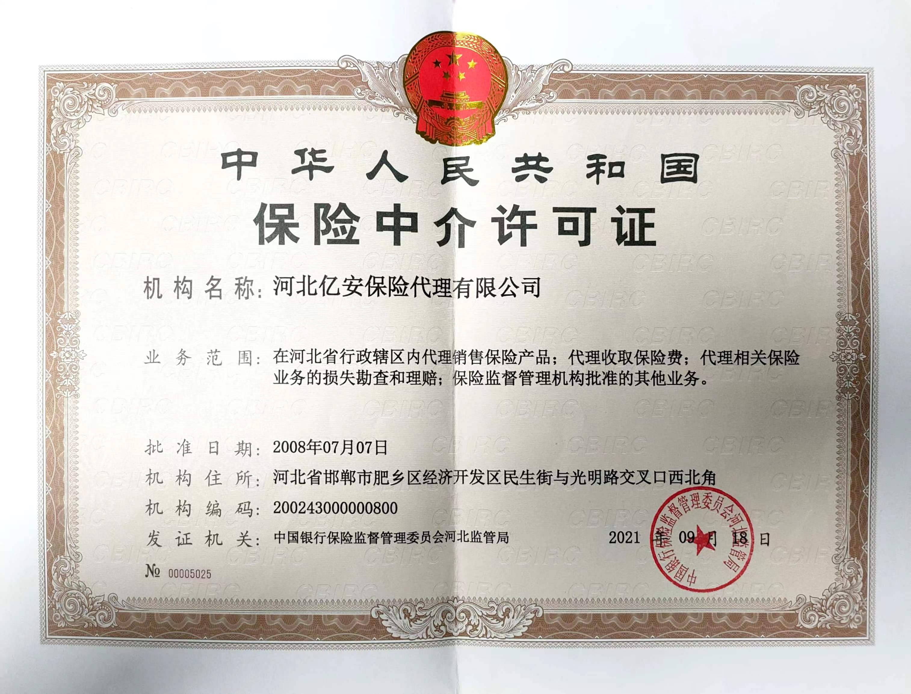 | 公司名称: | 河北亿安保险代理有限公司 | ||||