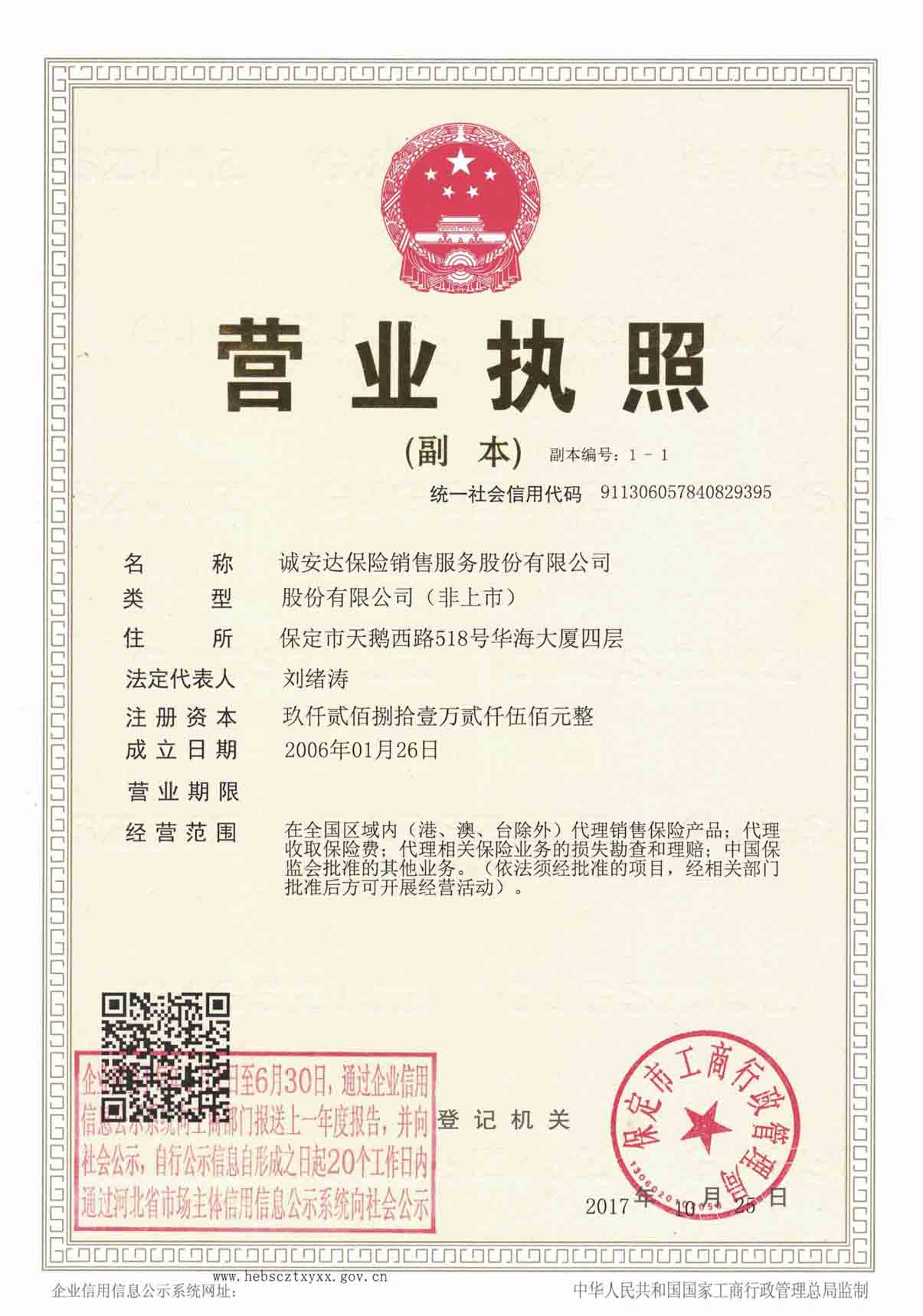 您的位置在:首页 >信息披露>诚安达保险销售服务股份有限公司
