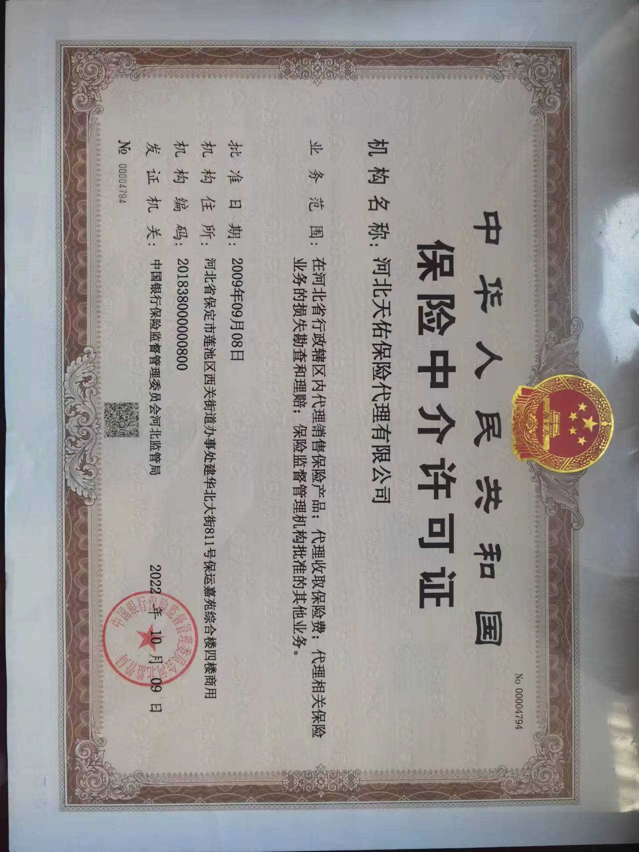 经营范围: 在河北省行政辖区内代理销售保险产品;代理收取保险费;代理相关保险业务的损失勘查和理赔;中国银保监会批准的其他业务。