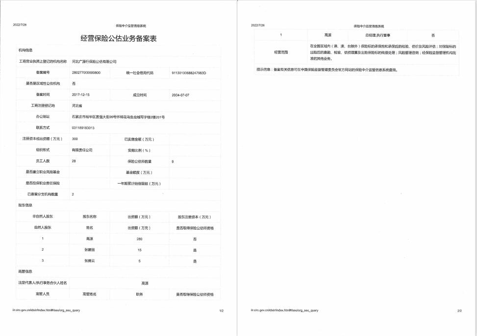 您的位置在:首页 >信息披露>河北广源行保险公估有限公司