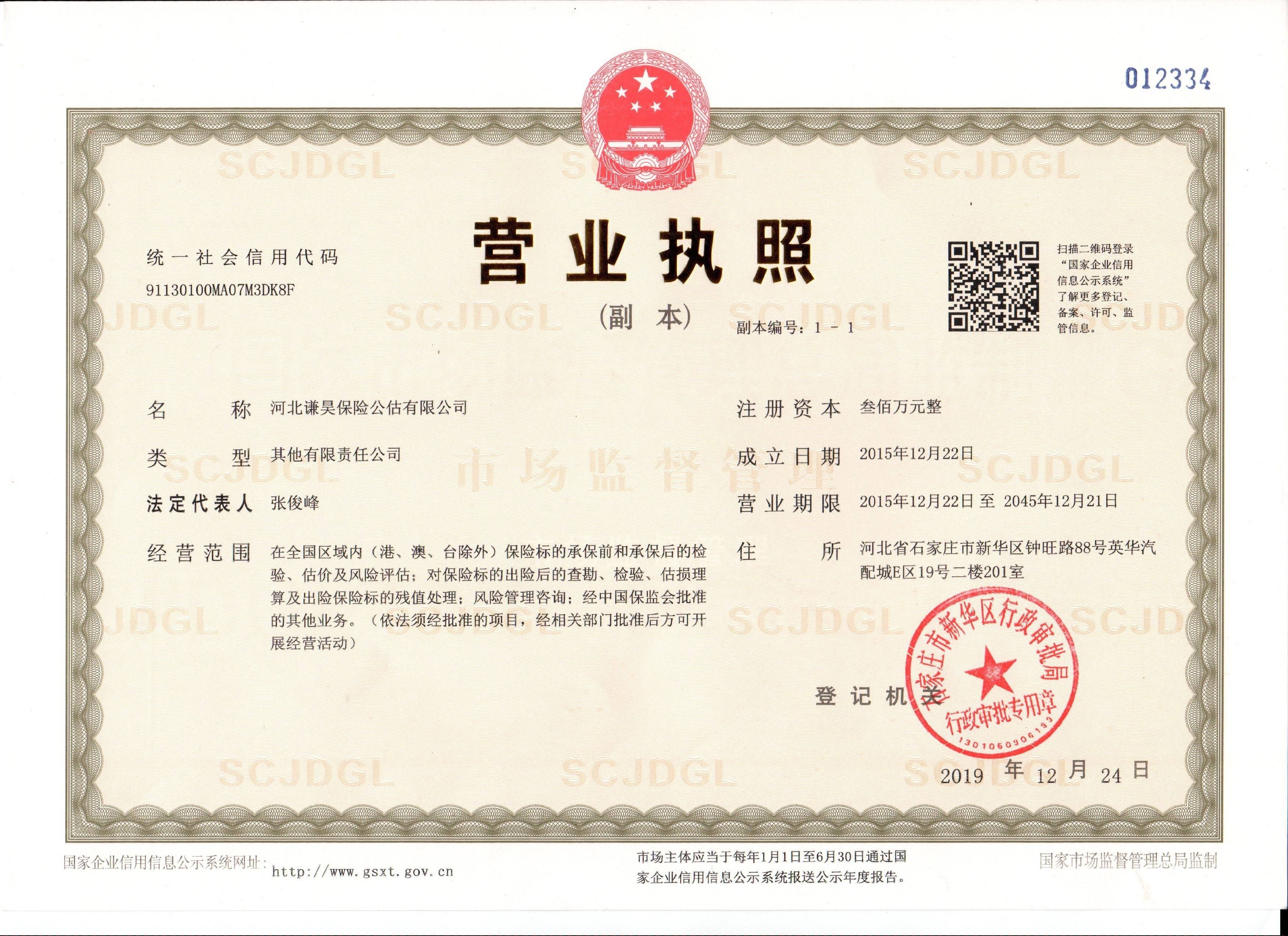 | 公司名称: | 河北谦昊保险公估有限公司 | ||||
