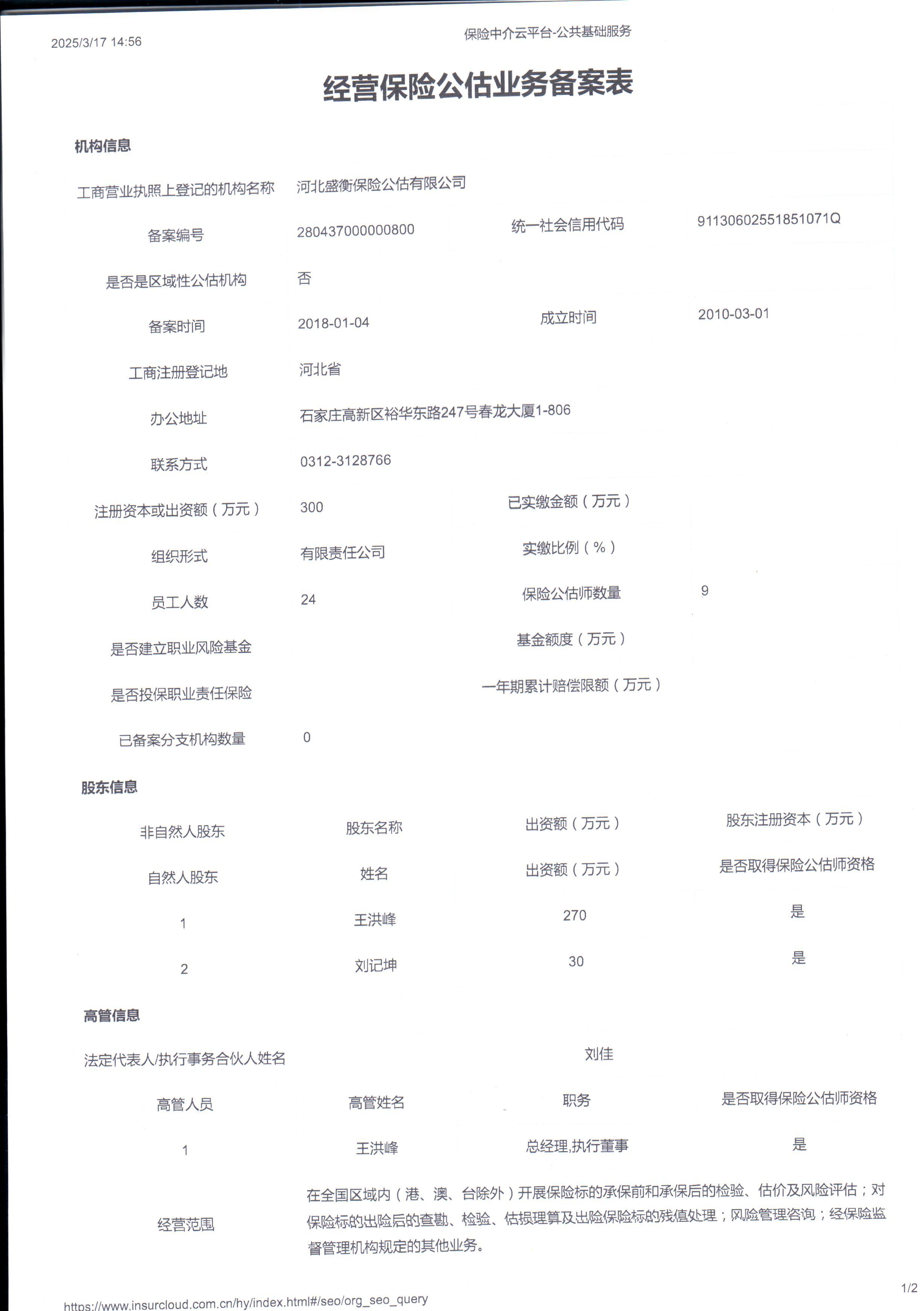 | 公司名称: | 河北盛衡保险公估有限公司 | ||||