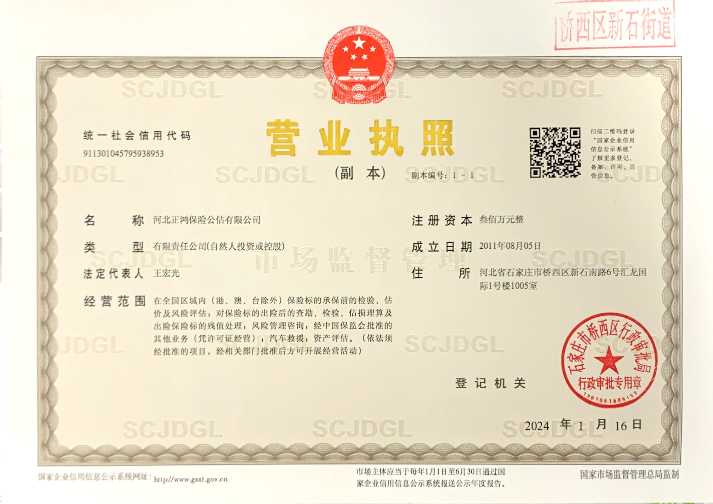 公司名称: 河北正鸿保险公估有限公司