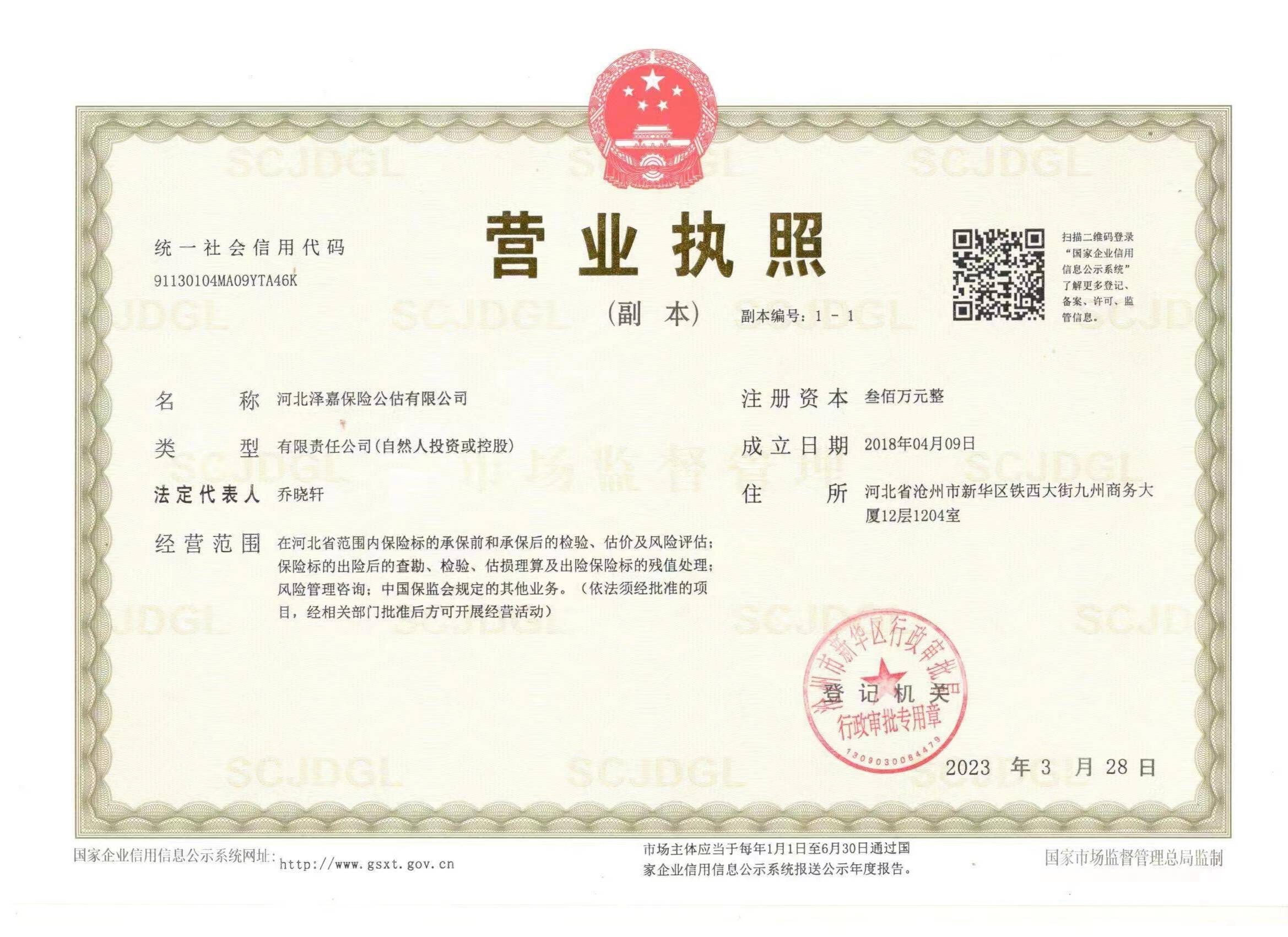 | 公司名称: | 河北泽嘉保险公估有限公司 | ||||