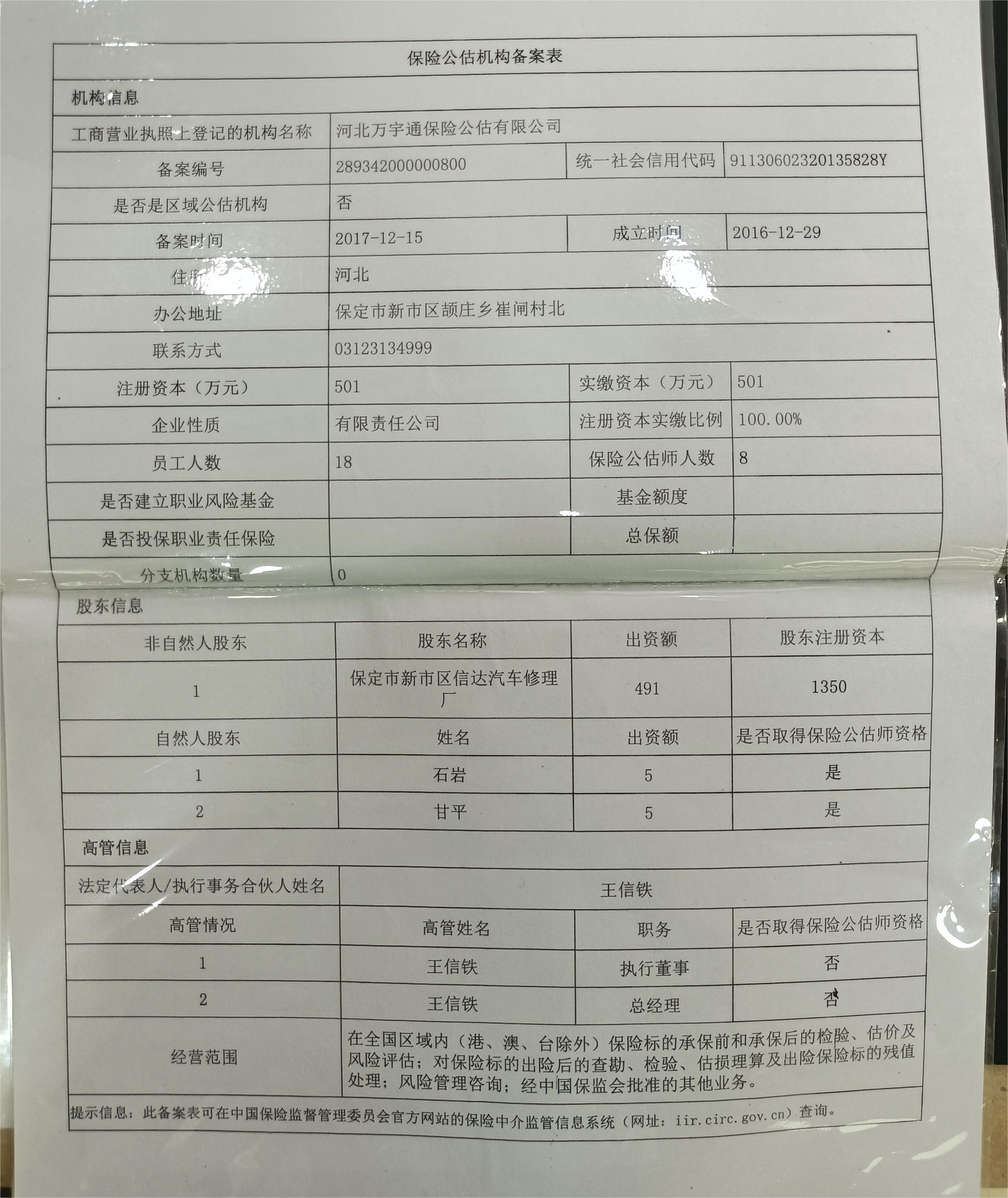 您的位置在:首页 >信息披露>河北万宇通保险公估有限公司