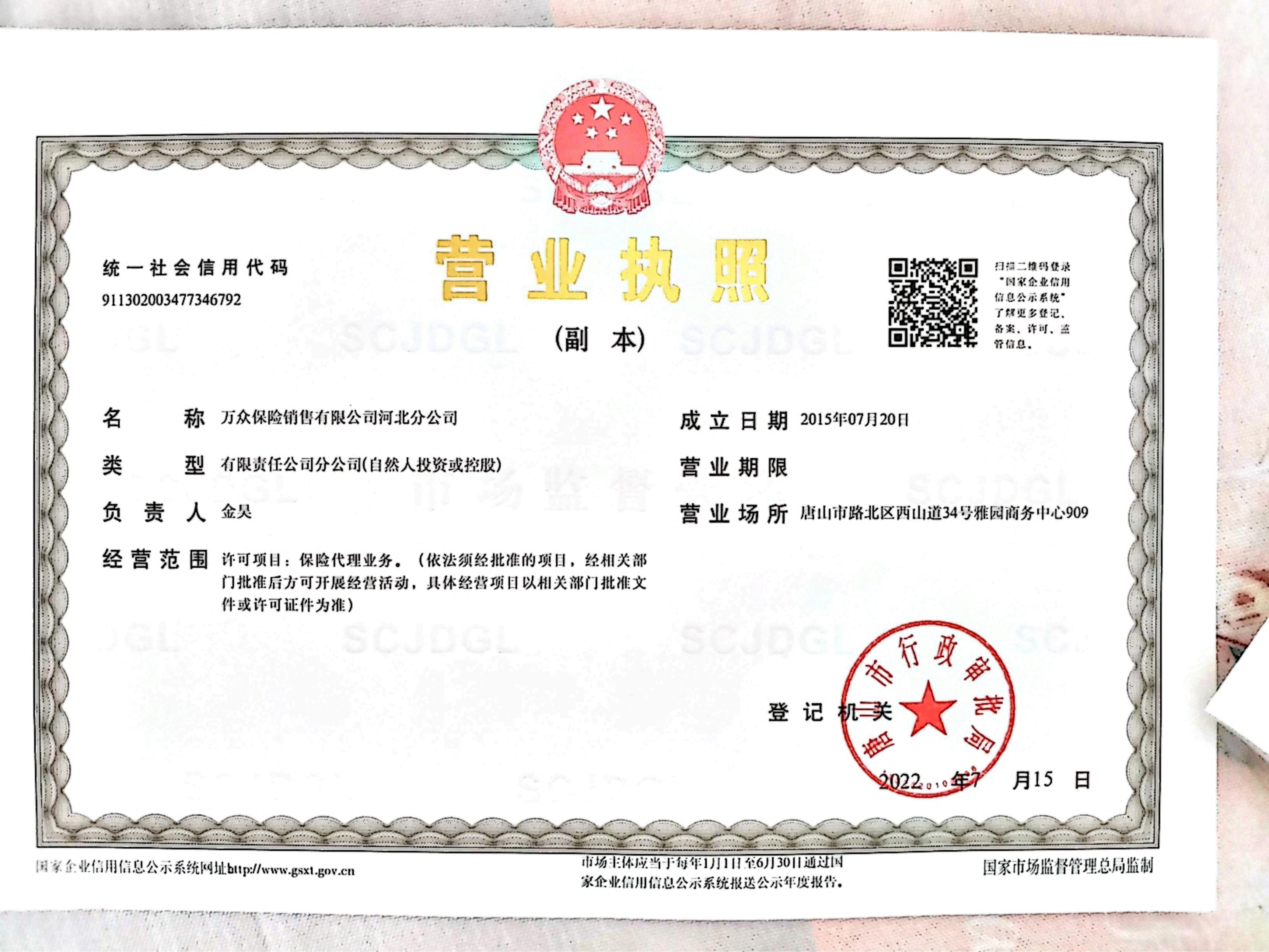 万众保险销售有限公司河北分公司