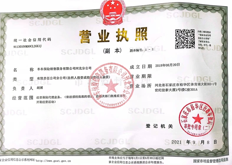 信息披露>车车保险销售服务有限公司河北分公司
