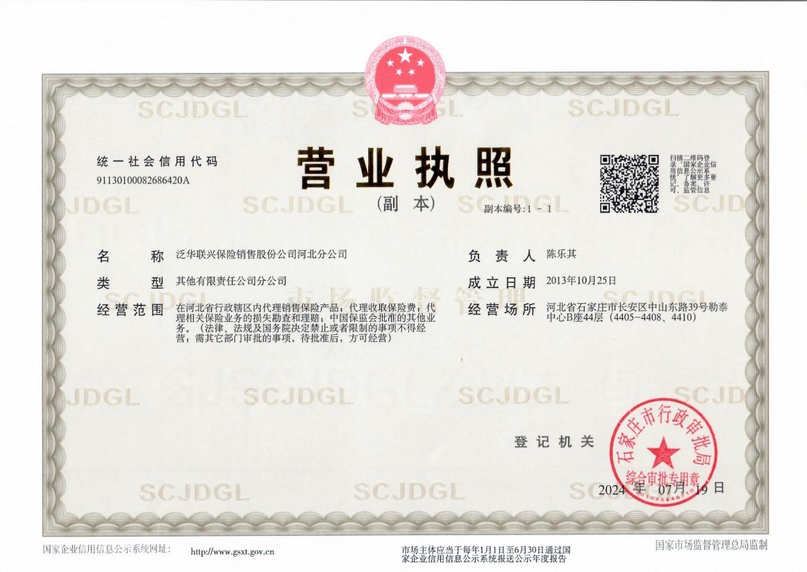 | 公司名称: | 泛华联兴保险销售股份公司河北分公司 | ||||