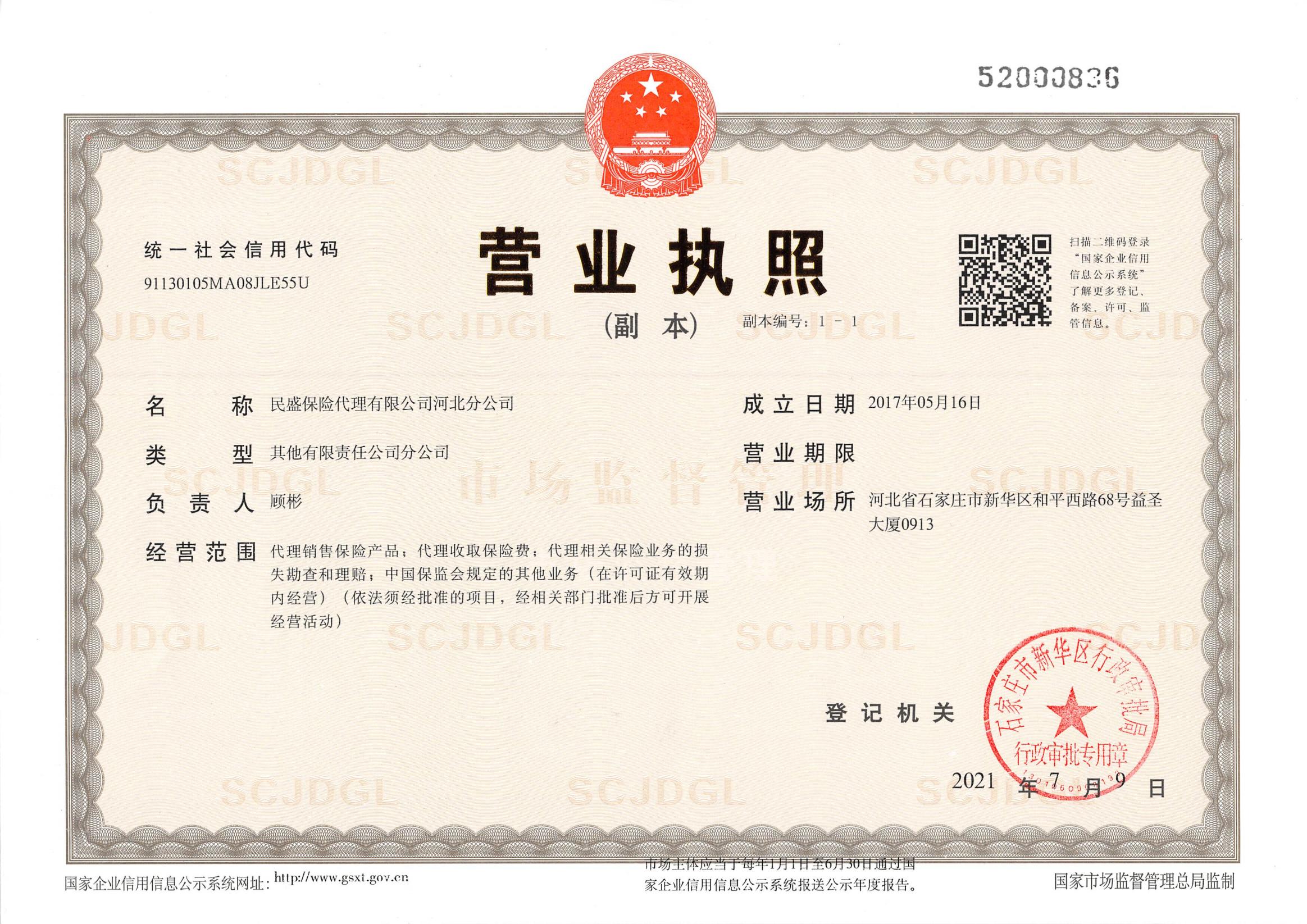 | 公司名称: | 民盛保险代理有限公司河北分公司 | ||||
