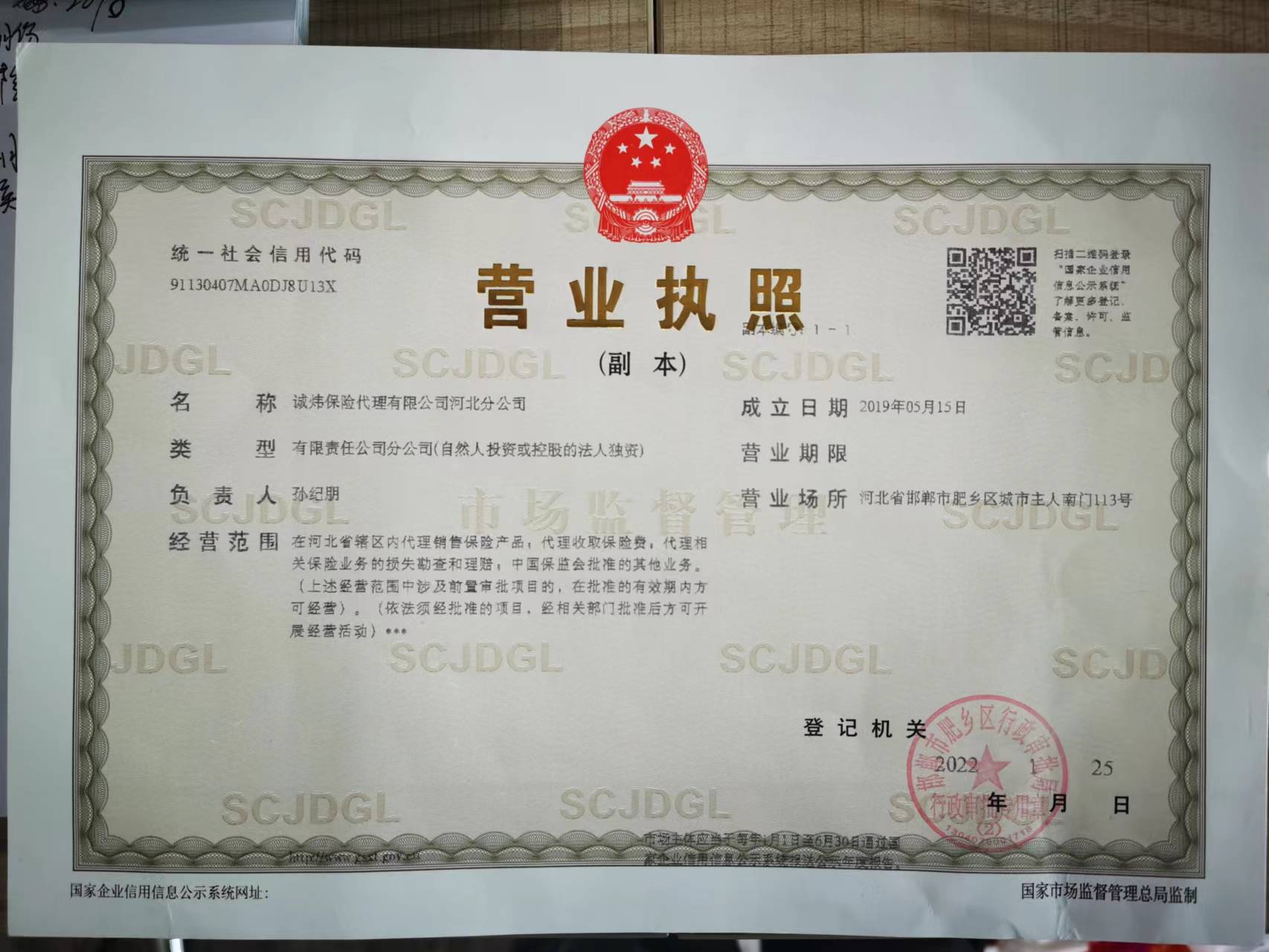| 公司名称: | 诚炜保险代理有限公司河北分公司 | ||||