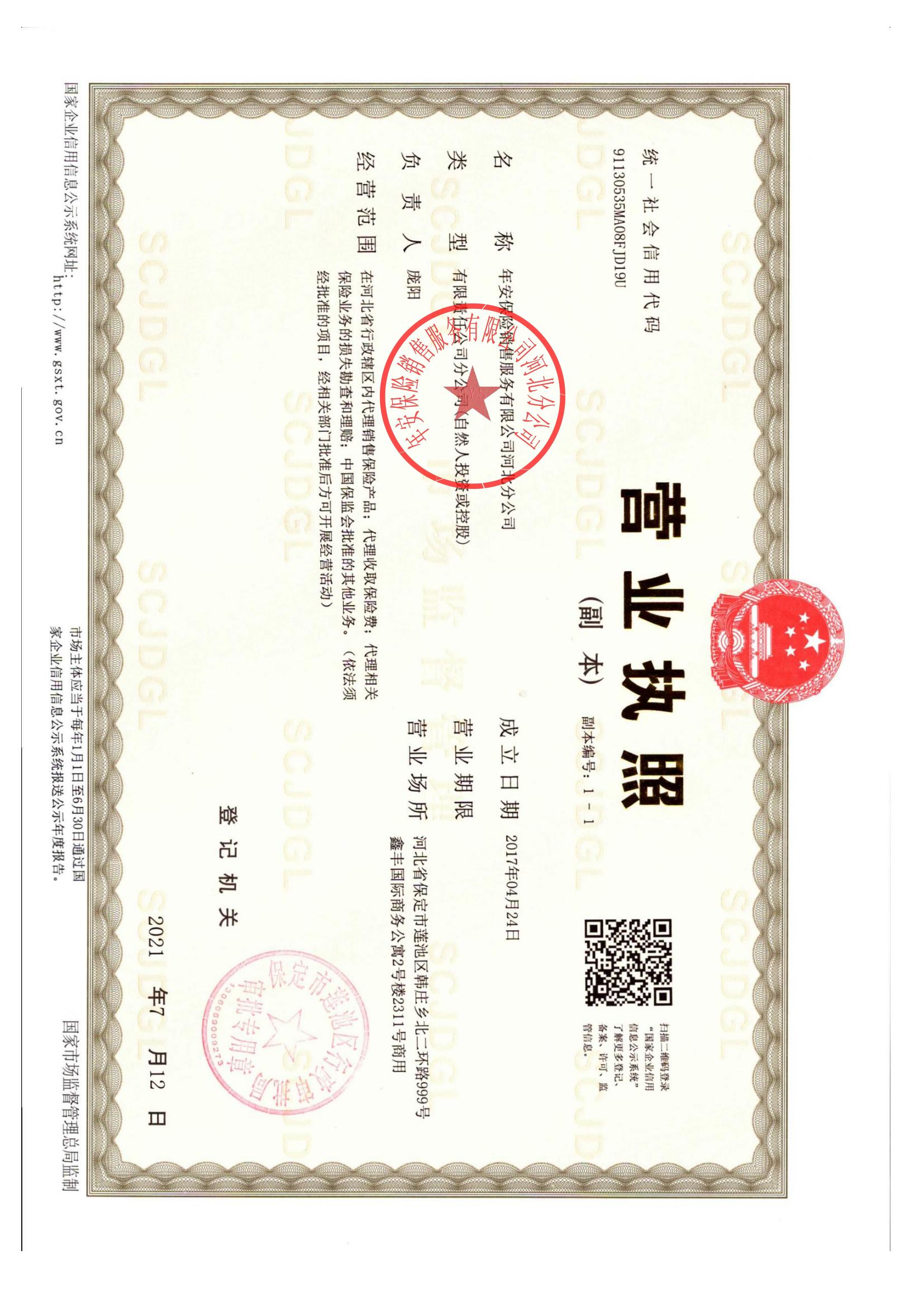 经营范围: 在河北省行政辖区内代理销售保险产品;代理收取保险费;代理相关保险业务的损失勘查和理赔;中国保监会批准的其他业务。(依法须经批准的项目,经相关部门批准后方可开展经营活动)