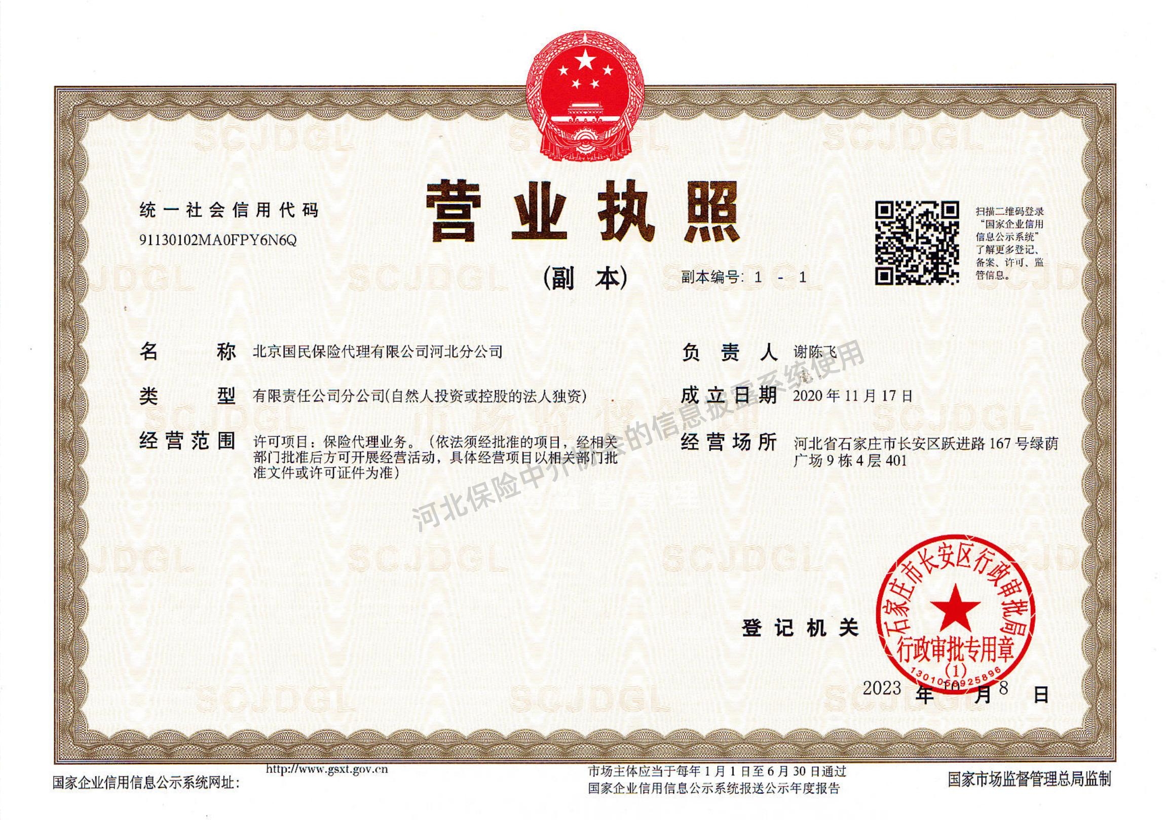 | 公司名称: | 北京国民保险代理有限公司河北分公司 | ||||