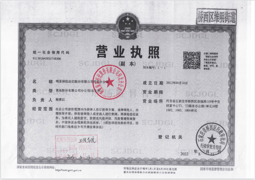 公司名称: 明亚保险经纪股份有限公司河北分公司