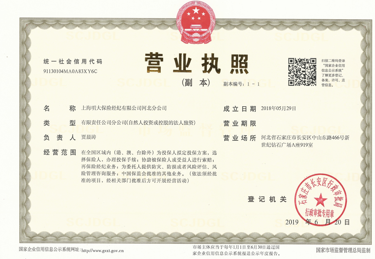 | 公司名称: | 上海明大保险经纪有限公司河北分公司 | ||||