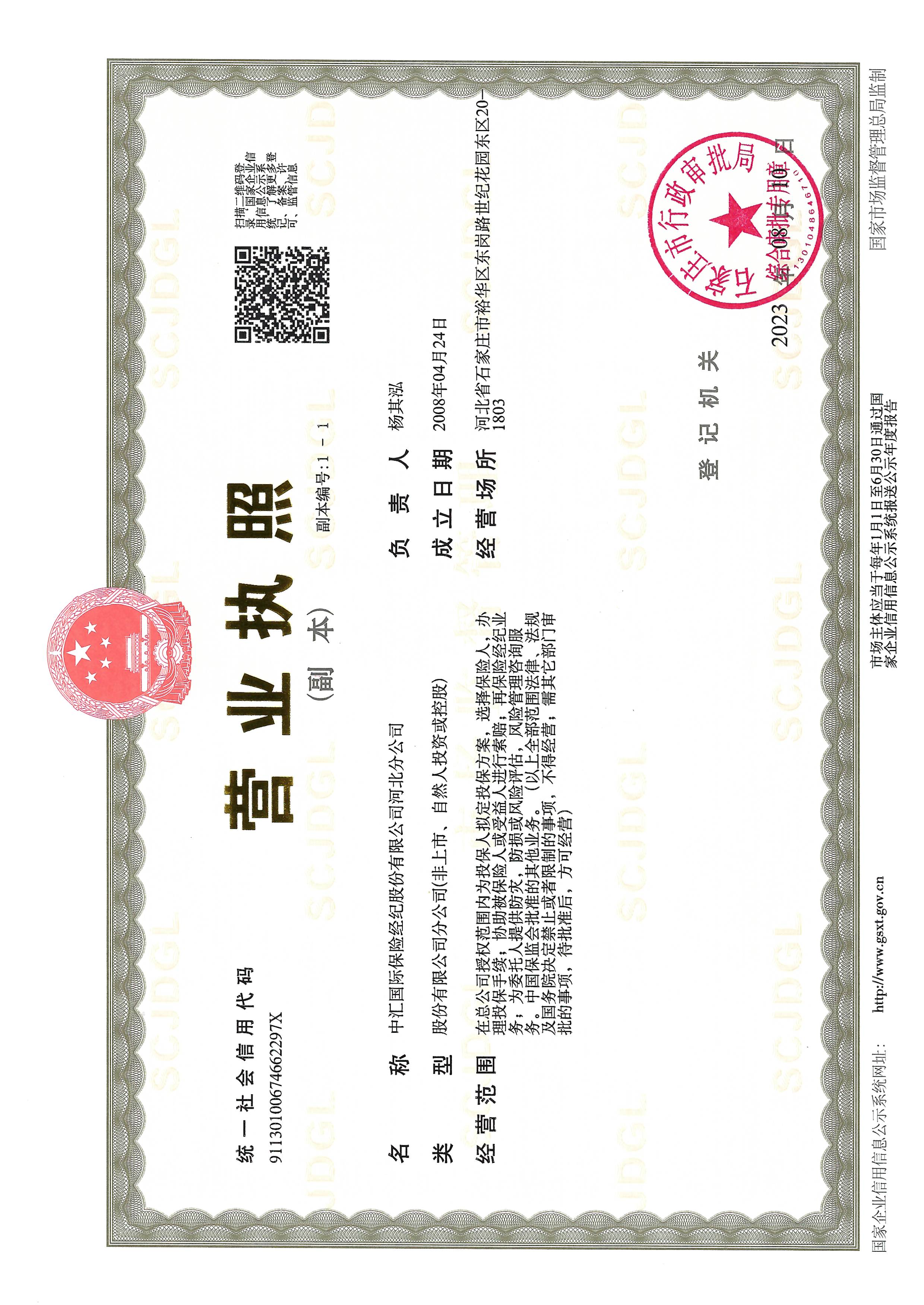 | 公司名称: | 中汇国际保险经纪股份有限公司河北分公司 | ||||