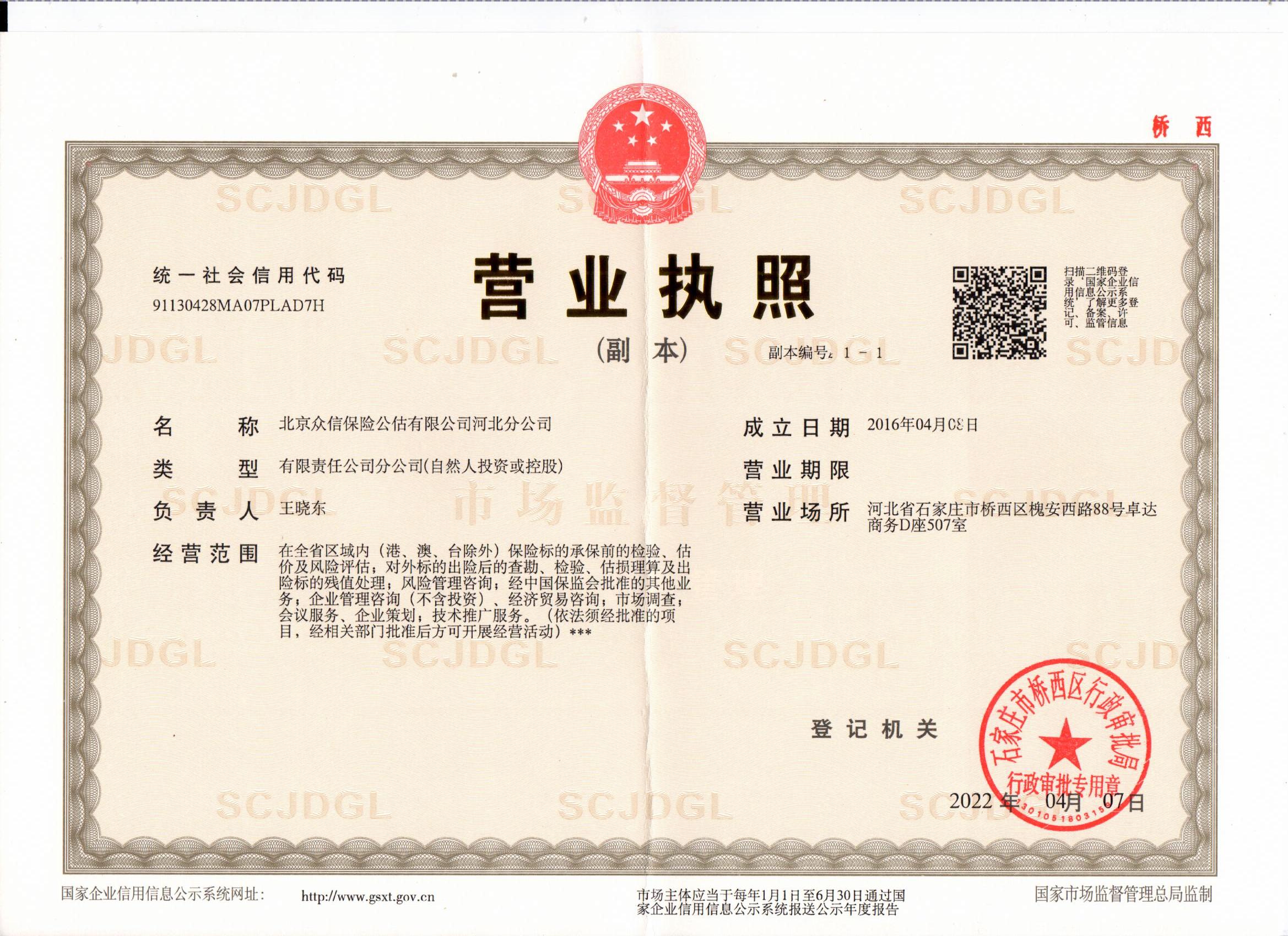| 公司名称: | 北京众信保险公估有限公司河北分公司 | ||||