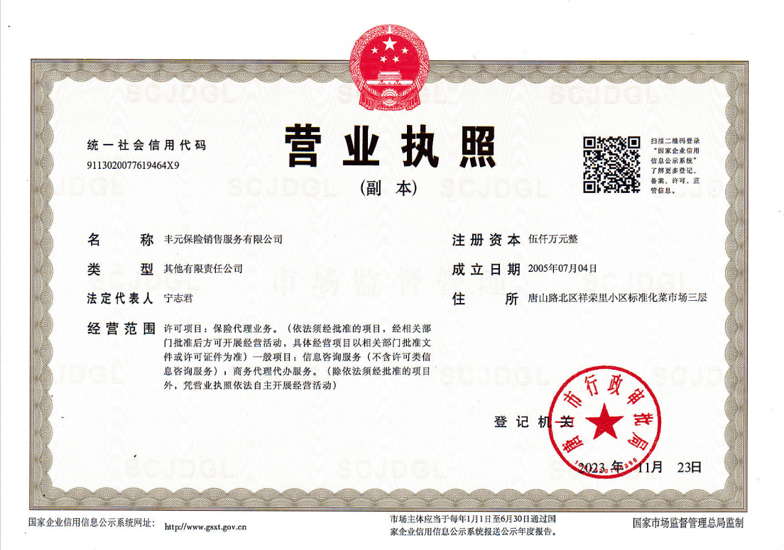 | 公司名称: | 丰元保险销售服务有限公司 | ||||