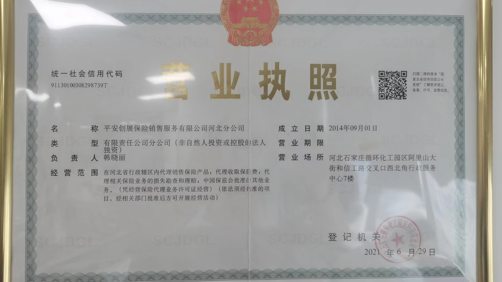 经营范围: 在河北省行政辖区内代理销售保险产品,代理收取保险费;代理相关保险业务的损失勘查和理赔;中国保监会批准的其他业务(凭经营保险代理业务许可证经营)(依法须经批准的项目,经相关部门批准后方可开展经营活动)