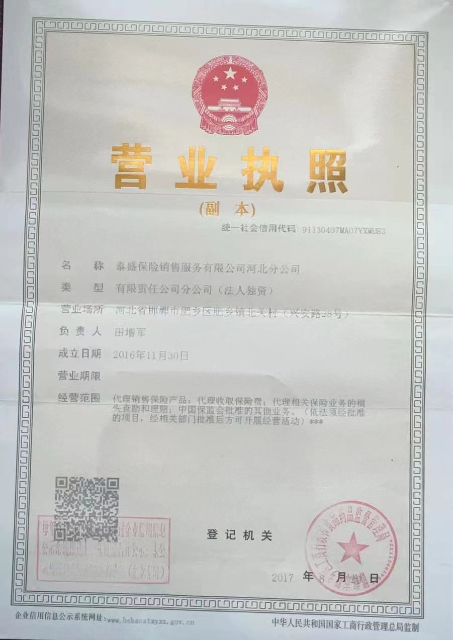 公司名称: 泰盛保险销售服务有限公司河北分公司
