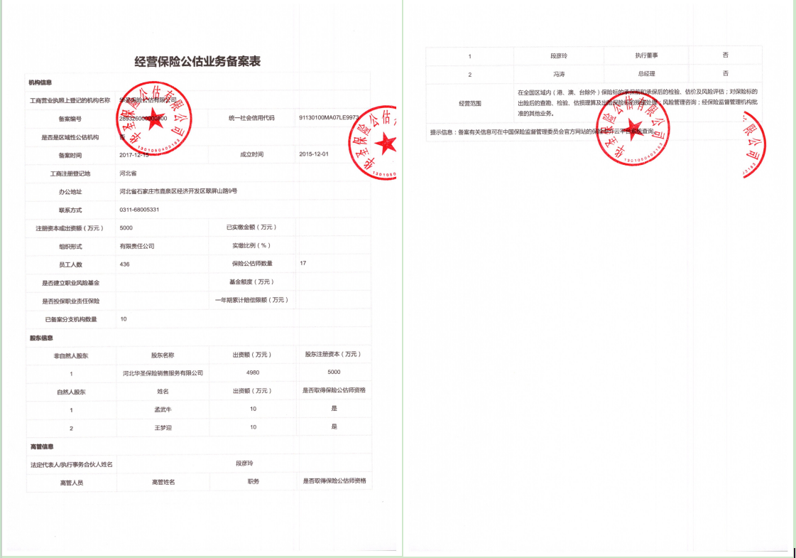 公司名称: 华圣保险公估有限公司