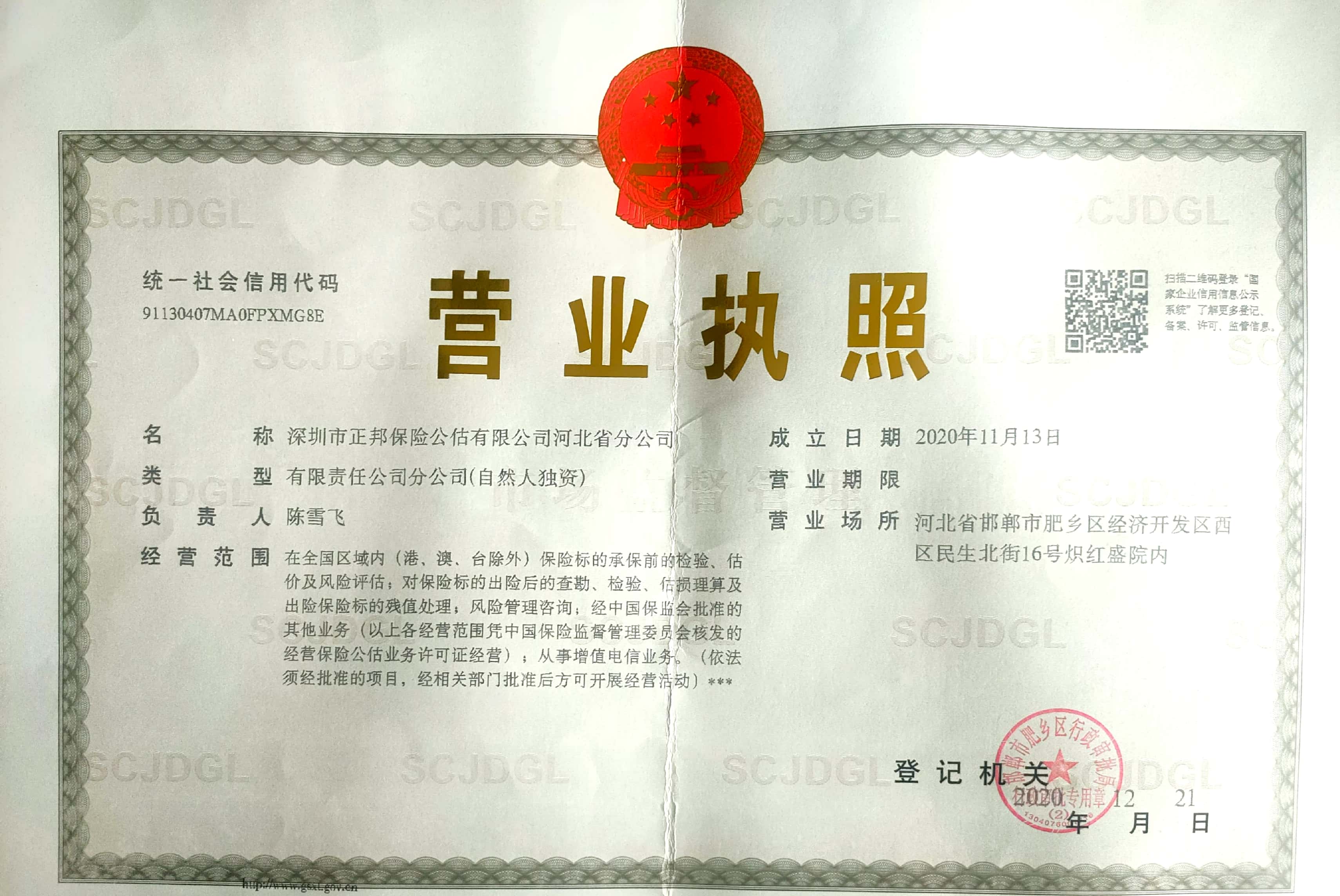| 公司名称: | 深圳市正邦保险公估有限公司河北省分公司 | ||||