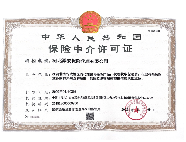 | 公司名称: | 河北泽安保险代理有限公司 | ||||
