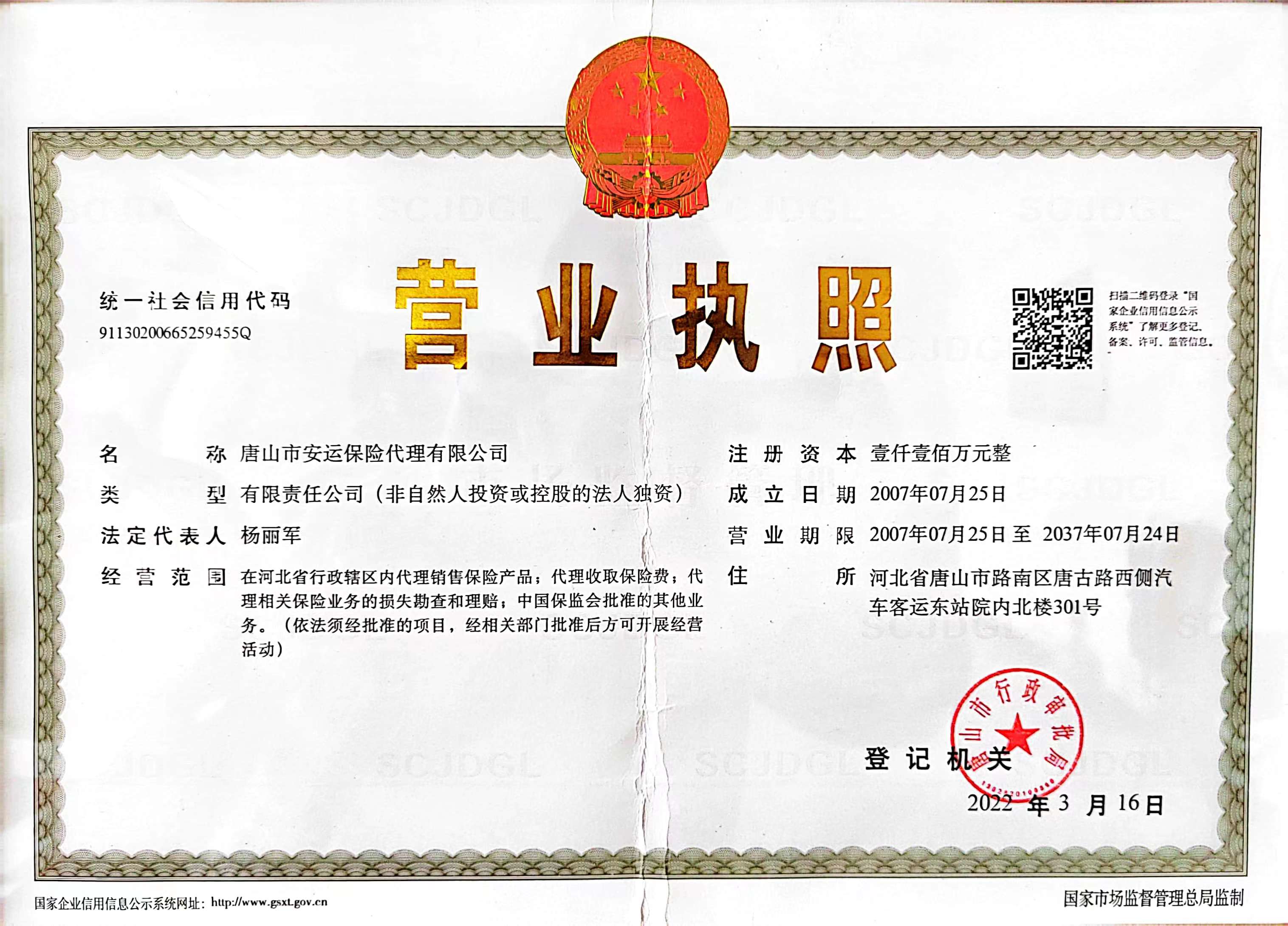 公司名称: 唐山市安运保险代理有限公司