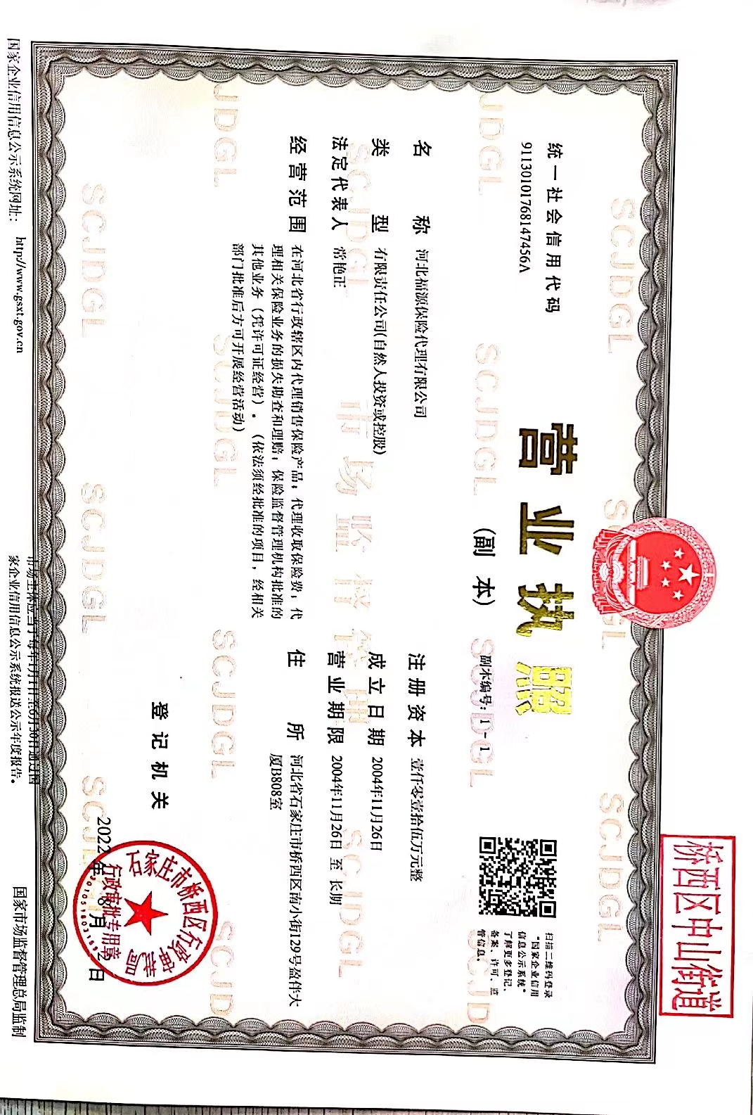经营范围: 在河北省行政辖区内代理销售保险产品;代理收取保险费;代理相关保险业务的损失勘查和理赔;保险监督管理机构批准的其他业务
