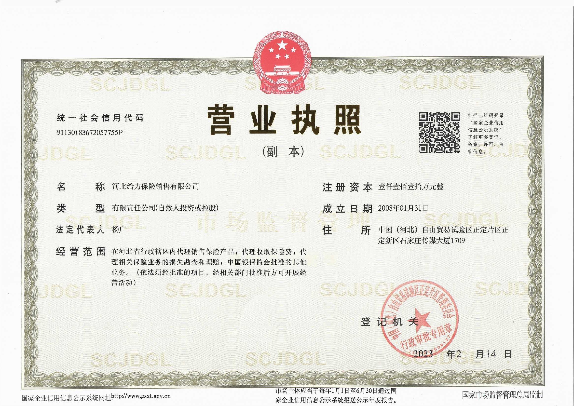 | 公司名称: | 河北给力保险销售有限公司 | ||||